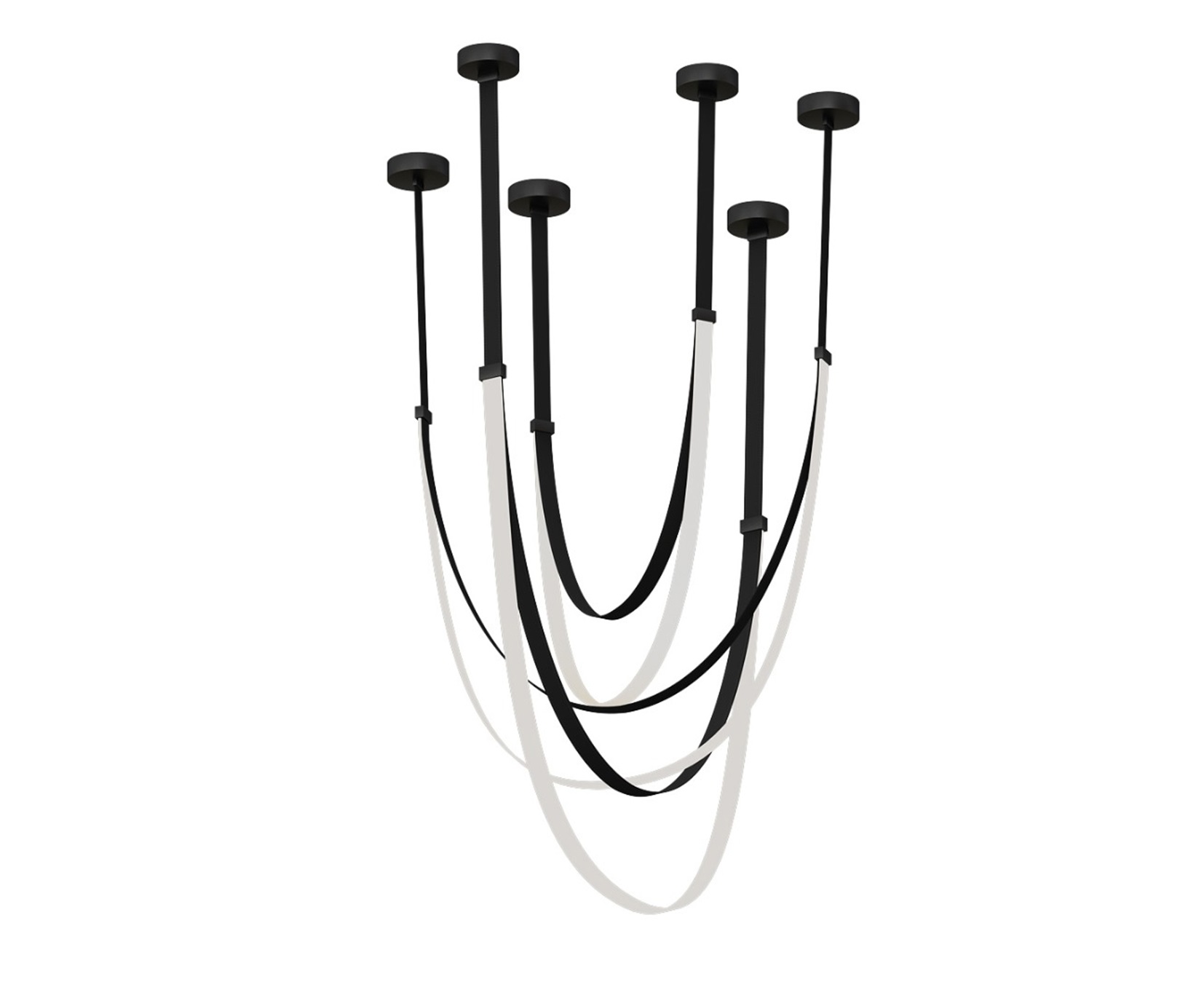 Расстояние между потолочными чашами от 60 до 120 см. Высота люстры 180 см. Изменение расстояния между чашами не значительно влияет на общую высоту люстры.