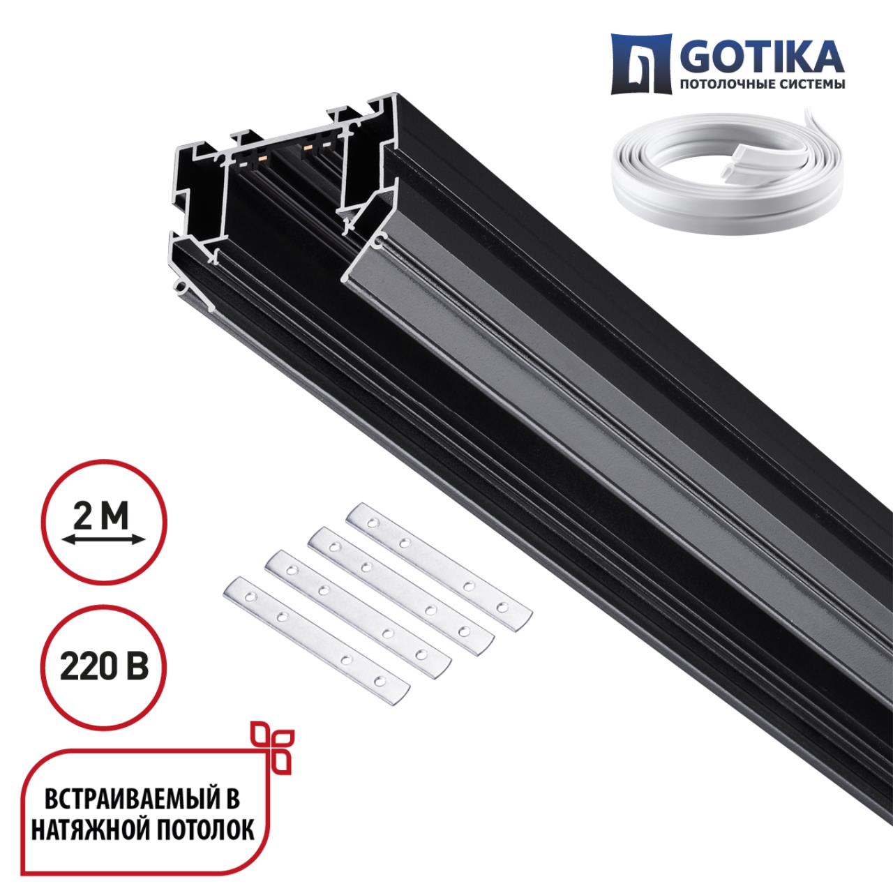 135304 PORT NT25 204 черный Шинопровод для монтажа в натяжной потолок 2м, в комплекте соединительная планка 4шт IP20 90-240V VECTOR