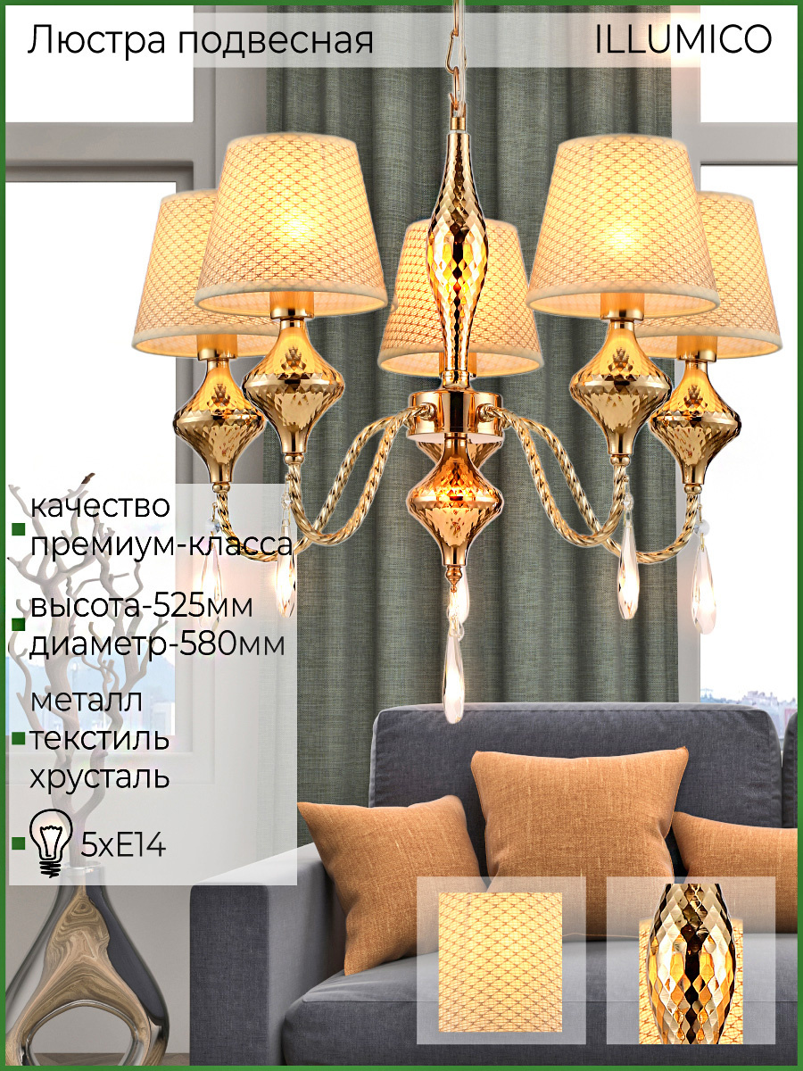 Люстра потолочная ILLUMICO E14 IL6176-5P-27 GD