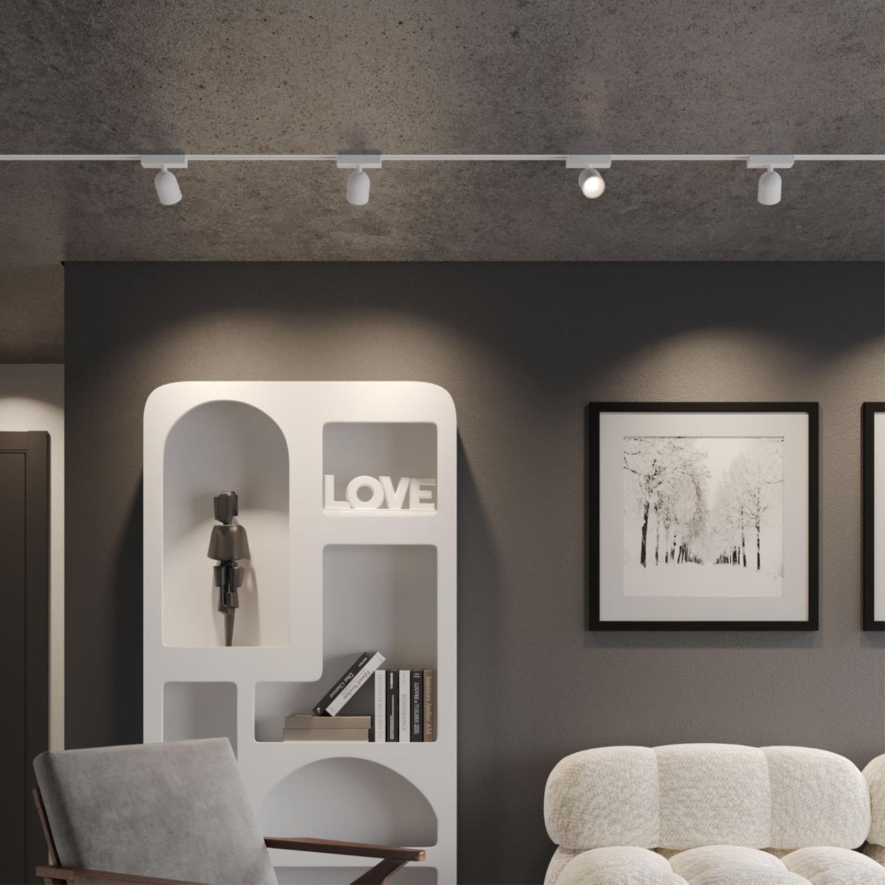 Трековые однофазные двухжильные поворотные светодиодные светильники SOLETTE представлены в двух вариантах цвета корпуса — матово-чёрном и матово-белом, а также в двух цветовых температурах — 3000K и 4000K. Основным их достоинством является инновационный поворотный механизм, позволяющий скрыть внутренние элементы и сохранить эстетичный вид монолитного корпуса. Благодаря ряду значимых преимуществ, таких как узкий угол рассеивания света (32°), архитекторы и дизайнеры всё чаще выбирают светильники SOLETTE для эффективного выделения элементов интерьера, создавая привлекательное и выразительное освещение.