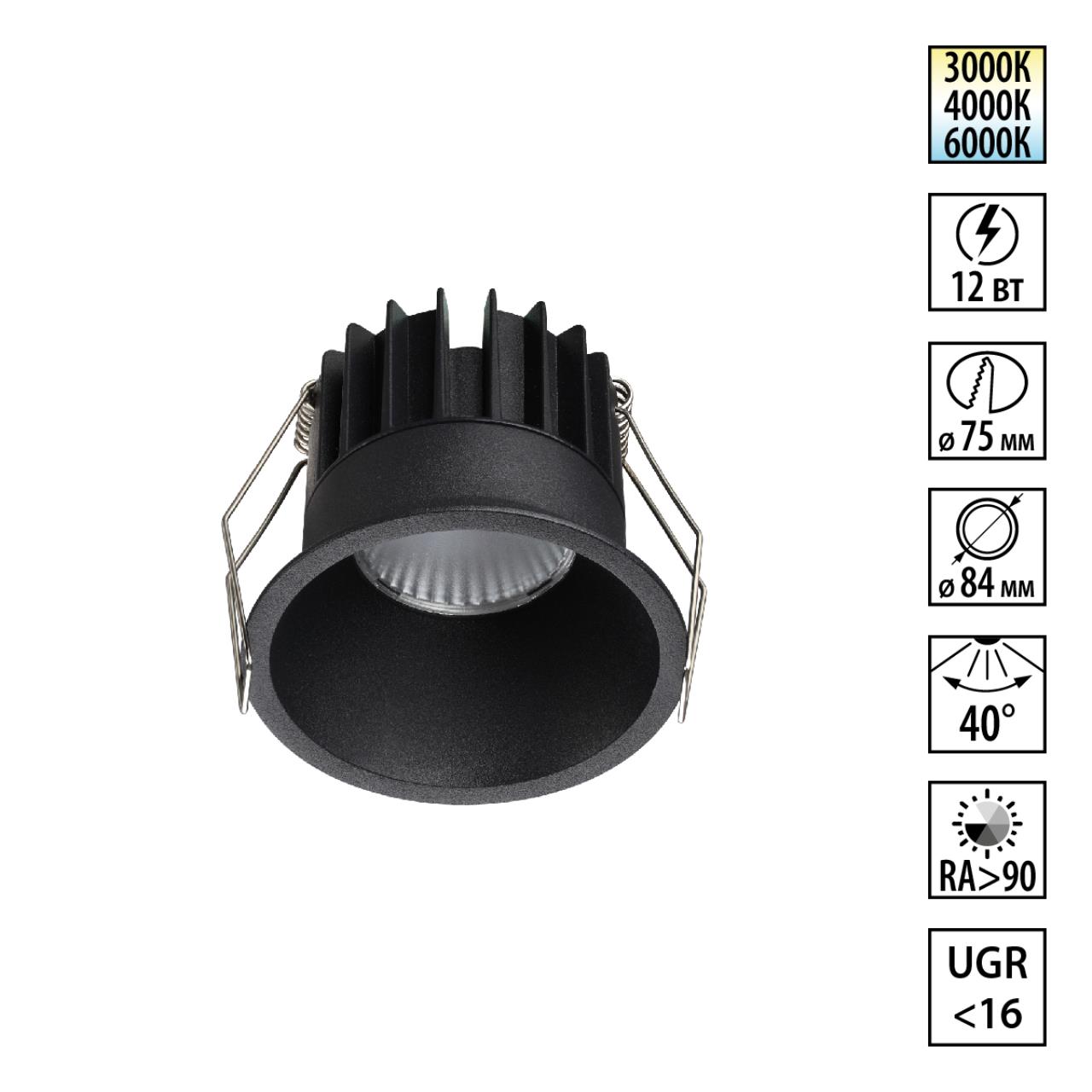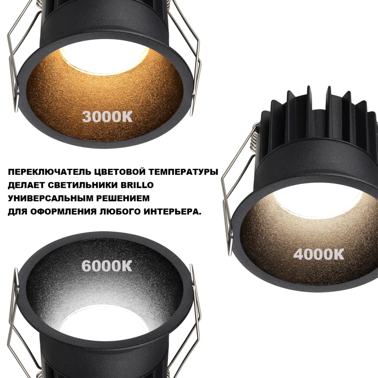 359866 WIR NT26 000 черный Светильник встраиваемый с переключателем цв. температуры IP20 LED 12W 100-265V 3000К/4000К/6000К BRILLO