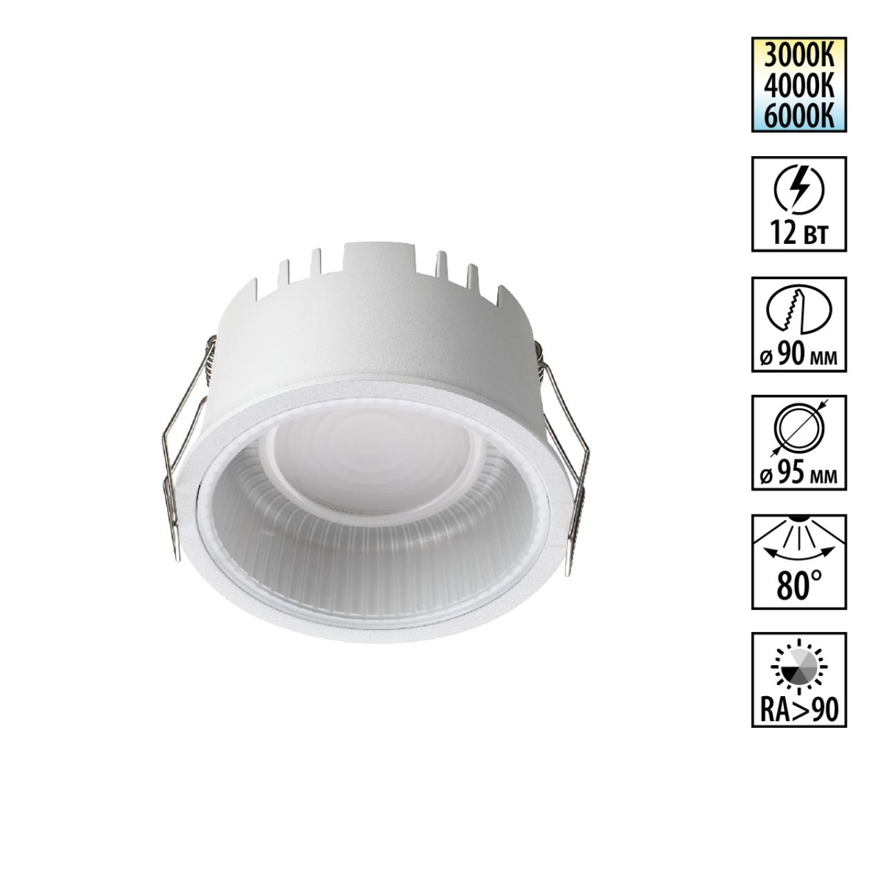 359875 WIR NT26 000 белый Светильник встраиваемый с переключателем цв. температуры IP20 LED 12W 100-265V 3000К/4000К/6000К CLARTE