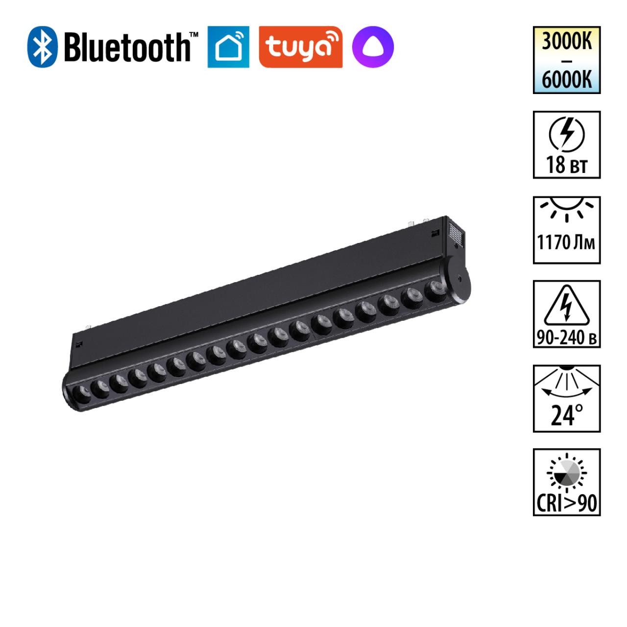 359949 PORT NT25 216 черный Трековый св-к диммир. со сменой цв.температуры, пульт ДУ/Tuya Smart Life IP20 LED 18W 3000-6000K 90-240V VECTOR
