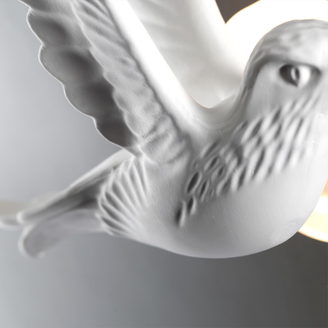В последнее время панно из декоров в виде природных элементов чрезвычайно популярны. Мы пошли дальше и создали настенные гипсовые птицы Colombella, которые помимо декоративной функции будут давать комфортный отраженный свет. Светильники прекрасно будут смотреться в детской комнате, в спальне, в холле детского заведения в виде настенного панно. Светильники можно красить в любой цвет.