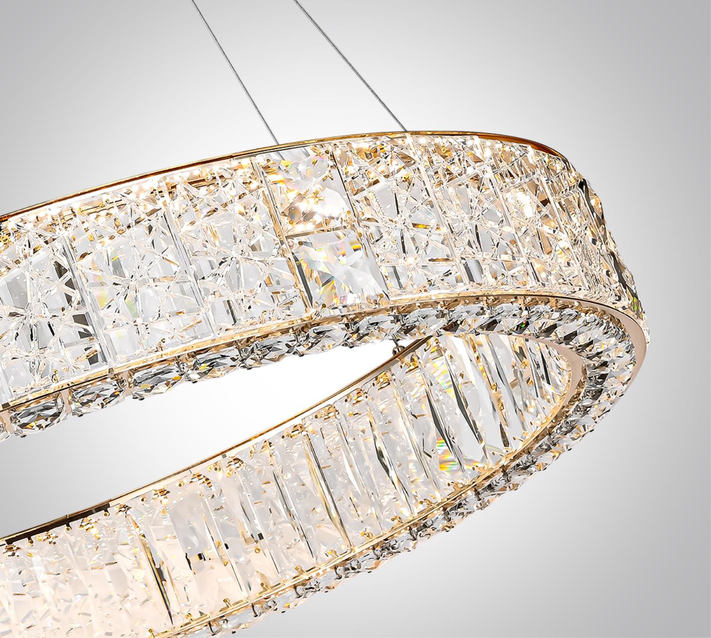 Линия Version — это роскошное сочетание crystal glass и хрустальных элементов, которое поражает своей элегантностью и нежностью. Большая линейка светодиодных светильников позволяет осветить много зон в одном стиле. Потолочная модель диаметром 500 мм, кольцевые люстры в трех размерах: 500, 600 и 800 мм, горизонтальный светильник длиной 1000 мм и бра. Кольца возможно устанавливать как по отдельности (две версии положения струн: стандартное и прямое), так и в композиции из двух и трех колец. Для композиций есть отдельные базы, в которые устанавливаются драйверы от колец и осуществляется коммутация.