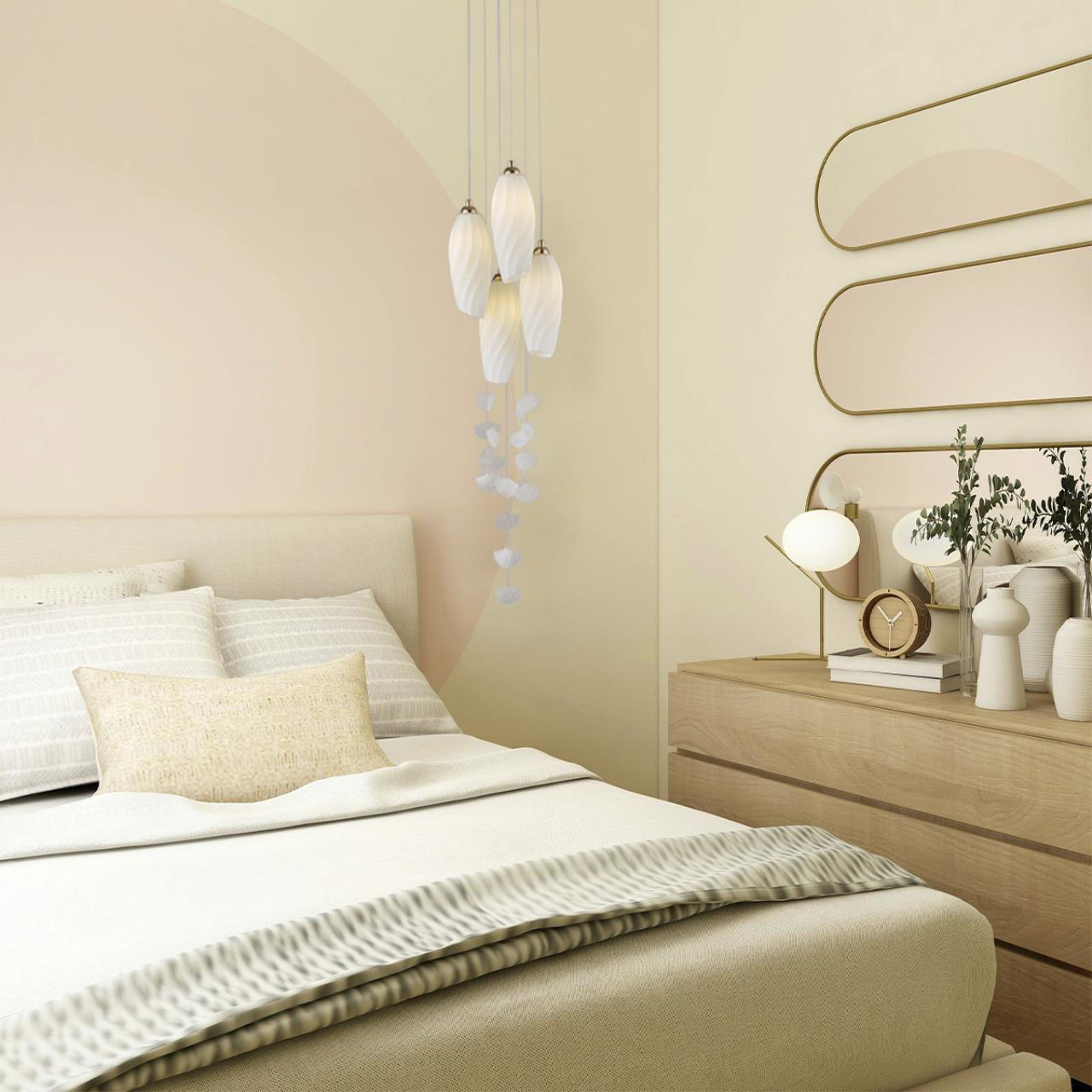 Очаровательная линия Shivon, элегантная и лаконичная, станет изюминкой Вашего интерьера. Её основание цвета французское золото или хром создает эффектный контраст с плафонами из фактурного стекла, выполненными в виде цветочных бутонов. Каждый плафон - это маленькая красота, которая наполнит Ваше пространство благородным сиянием. Идеально подходящая для гостиной, столовой или спальни, эта линия обещает окружить Вас роскошью и изысканностью, создавая атмосферу уюта и стиля.