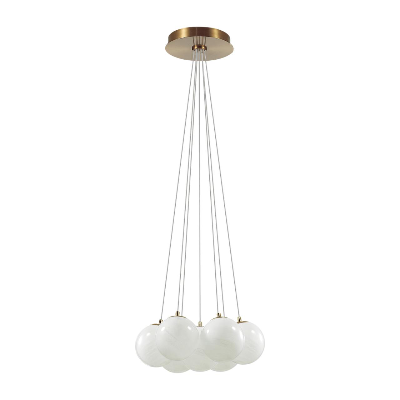 Образ шаров в линии Magia создает воздушную атмосферу. Белое глянцевое молочное стекло выполнено с эффектом облачного узора. Высота регулируется от 600 до 2000 мм. При желании можно использовать декоративное кольцо для сборки проводов. Рекомендуется использовать филаментные лампы с цоколем E14.