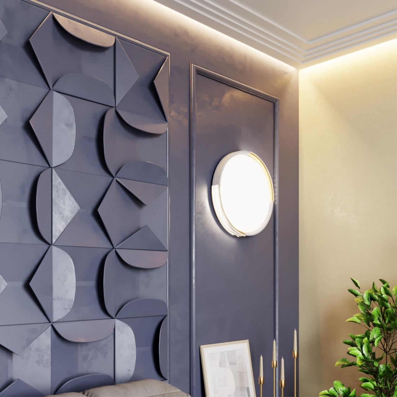 Светильник 7612/ELN линии VELIO состоит из металлического основания (базы) и пластикового рассеивателя. Материал рассеивателя — качественный акрил белого цвета с матовой поверхностью без текстуры. Пластик обеспечивает светильнику равномерное рассеивание и хорошее светопропускание. Форма плафона — круглая, декорирована ободом из пластика «под хрусталь» с золотистым элементом декора. Степень защиты IP43 позволяет использовать светильник в определенных зонах влажных помещений. В комплект входит LED-модуль с линзами мощностью 76 Вт, соответствующей лампе накаливания 740 Вт, а также переключатель температуры цвета (ССT) на драйвере, с помощью которого осуществляется изменение цветовой температуры 3000/4000/6000 К и переход светильника в режим теплого/белого/холодного света. Для установки необходимого режима рекомендуется использовать удлиненный тонкий предмет типа небольшой отвертки.