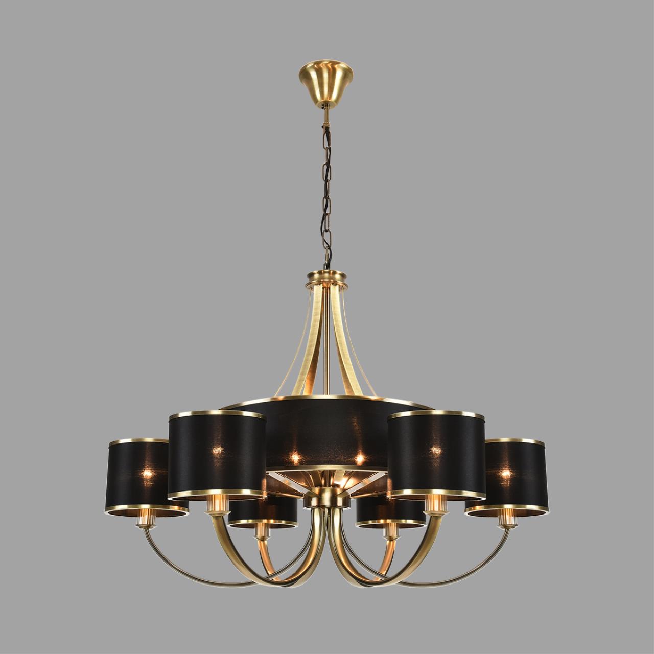 Респектабельная и утонченная серия DEMETRA не доминирует в пространстве, но задает тон, подчеркивая статусность интерьера. Черный цвет абажуров добавляет строгости, а металл цвета античная броназ - тепла и гостеприимства. Конструкция состоит из центрального стержня, плавно переходящего в разветвленную основу, которая поддерживает несколько рожков. В центральной части три незаметные лампы G9, которые наполняют теплым светом большой абажур. Внутри каждого малого абажура легко помещается лампа Е14. Форма симметрична, что создает ощущение гармонии и уравновешенности. Сочетание "теплого" металла и "холодного" черного текстиля создает выразительный эффект, делая люстру универсальной для разных интерьеров.