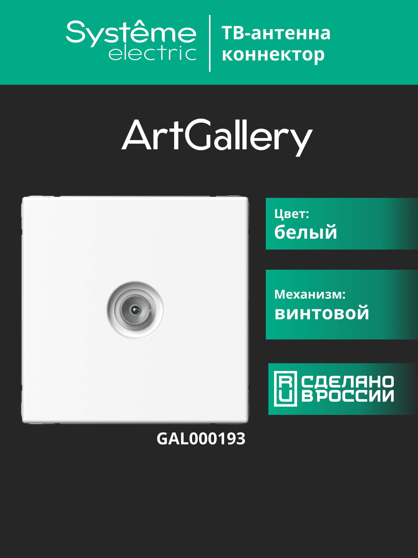 Механизм Systeme Electric серии ArtGallery в цвете белый антенны коннектора TV. Пластик с ионами серебра в белом цвете обеспечивает антибактериальный эффект.Лицевые детали из качественного ABS-пластика, устойчивого к царапинам и УФ-излучению. Лучший промышленный дизайн (по итогам премии Минпромторг 2023).