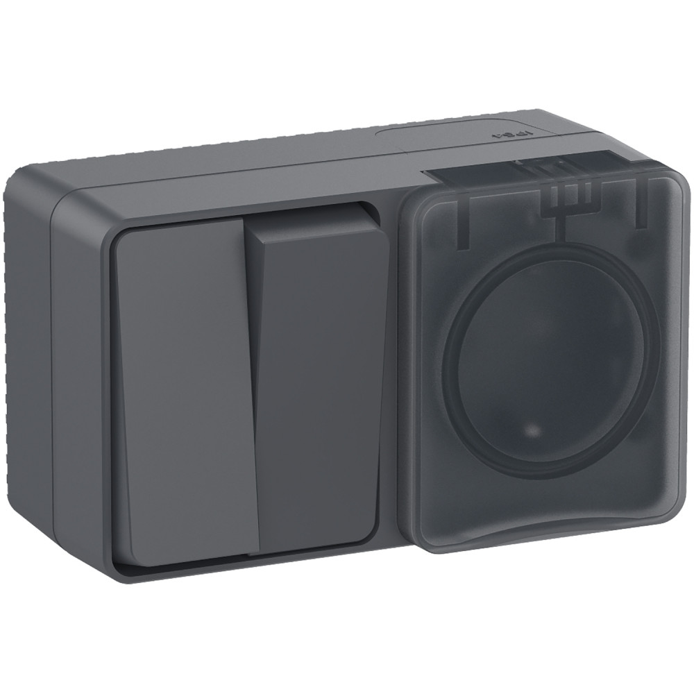 Блок для открытого монтажа из розетки с заземлением со шторками (16А, 250В) и 2-клавишного выключателя (10А).Степень защиты IP:54, Степень защиты IK: IK08. Продукция AtlasDesign Profi54 созданы специально для тех мест, где требуется повышенная защита от влаги и пыли. Уютная веранда в загородном доме, уличное кафе, любимый гараж или мастерская – выключатели и розетки будут обеспечивать надежную защиту и радовать глаз современным дизайном. Элегантный цвет антрацит гармонично впишется в любую обстановку.