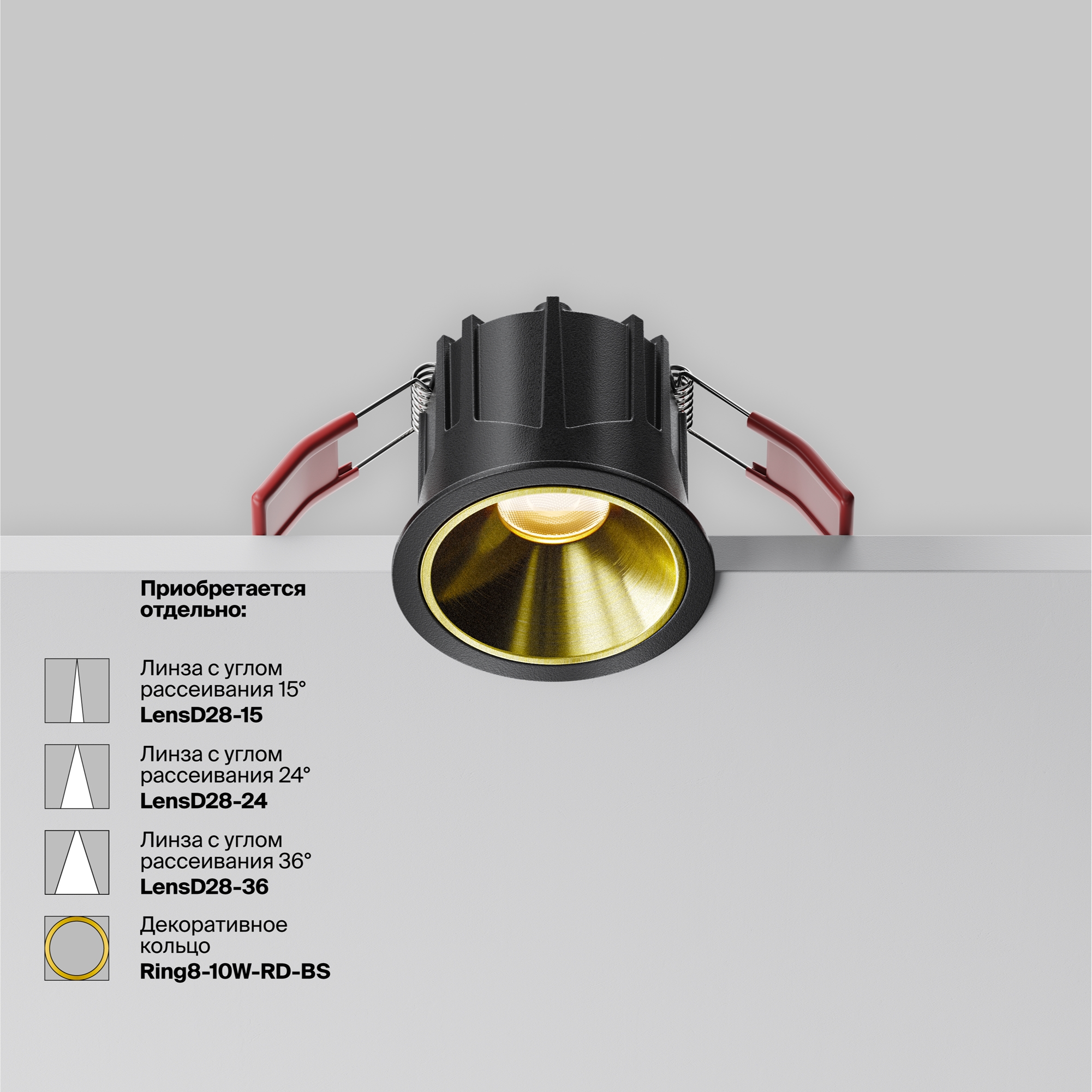 Металлический корпус. Оттенки — черный, белый. Геометрическая форма: цилиндр, квадрат. Круглая форма представлена в трех размерах. LED-источник света. Два варианта цветовой температуры: 3000К и 4000К. Есть модели с диммированием по протоколу Triac.