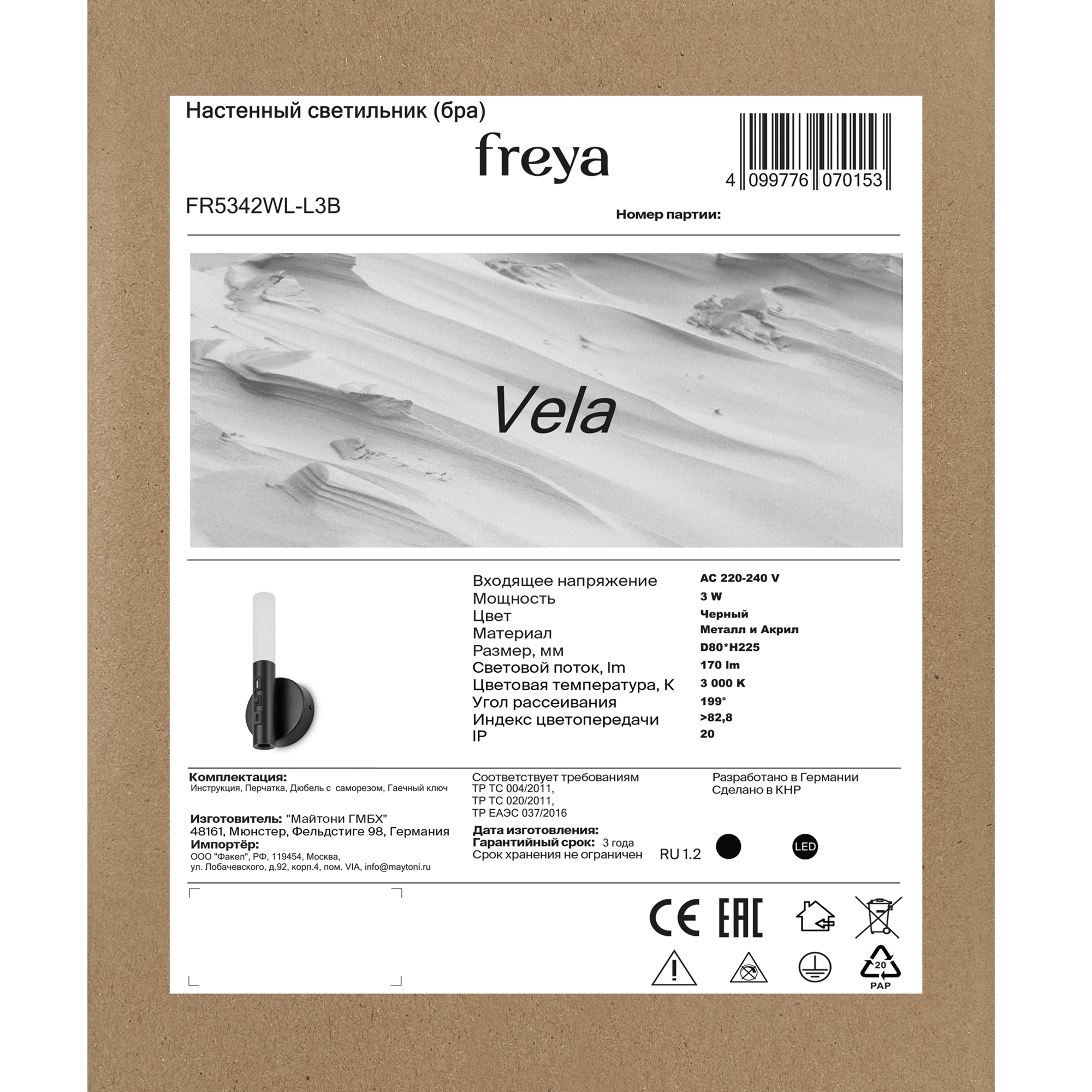 Настенный светильник (бра) Freya FR5342WL-L3B
