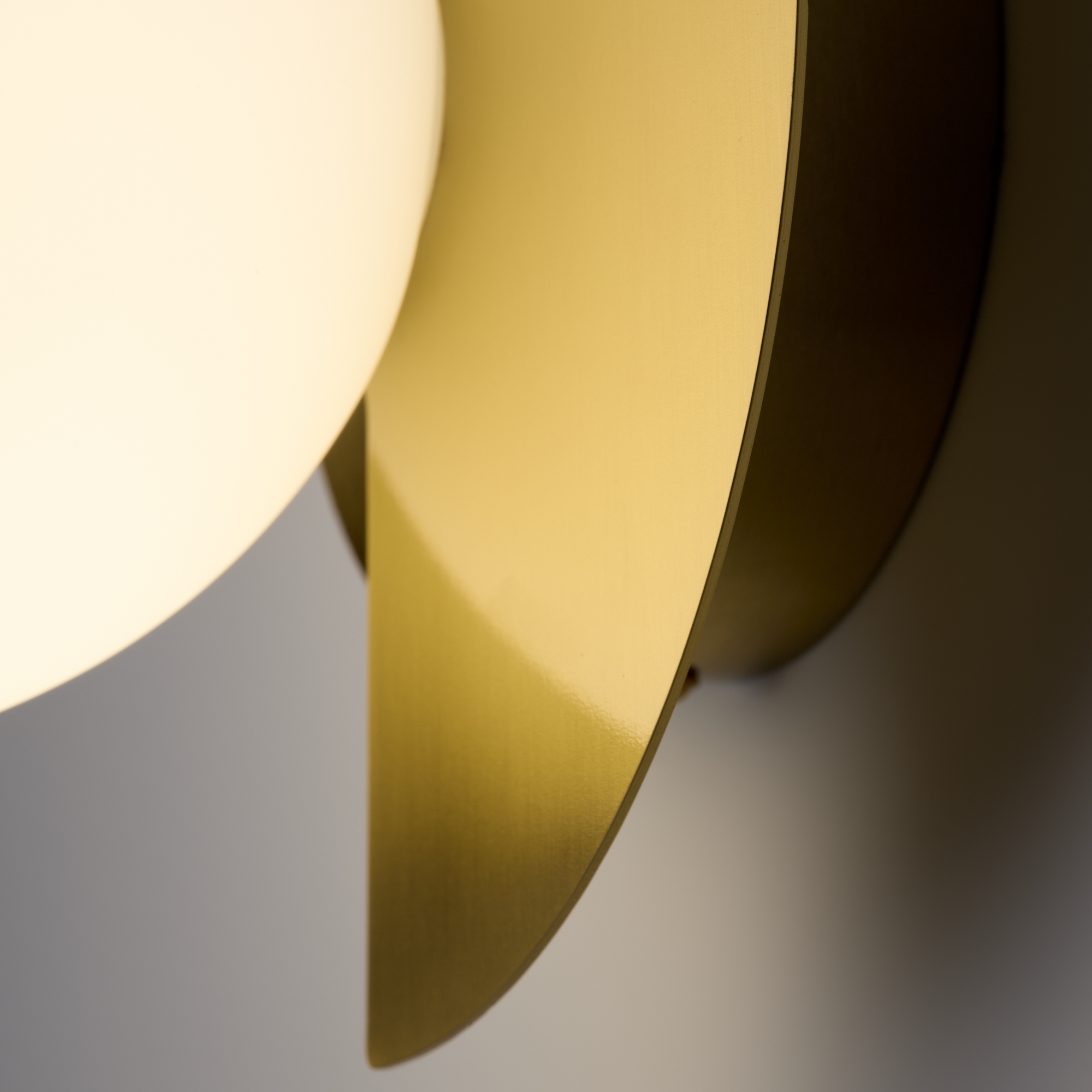 Арматура — металл, цвет — разноцветный или латунь. Белые матовые плафоны из стекла украшены металлическими золотыми или цветными лепестками. Динамичный дизайн для интерьеров в стиле Мемфис. Разнообразие форм в одной конструкции позволяет создать яркое освещение в больших комнатах. Высота регулируется. Источником света служит лампа с цоколем G9.
