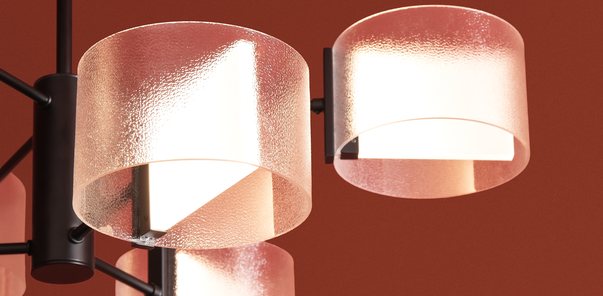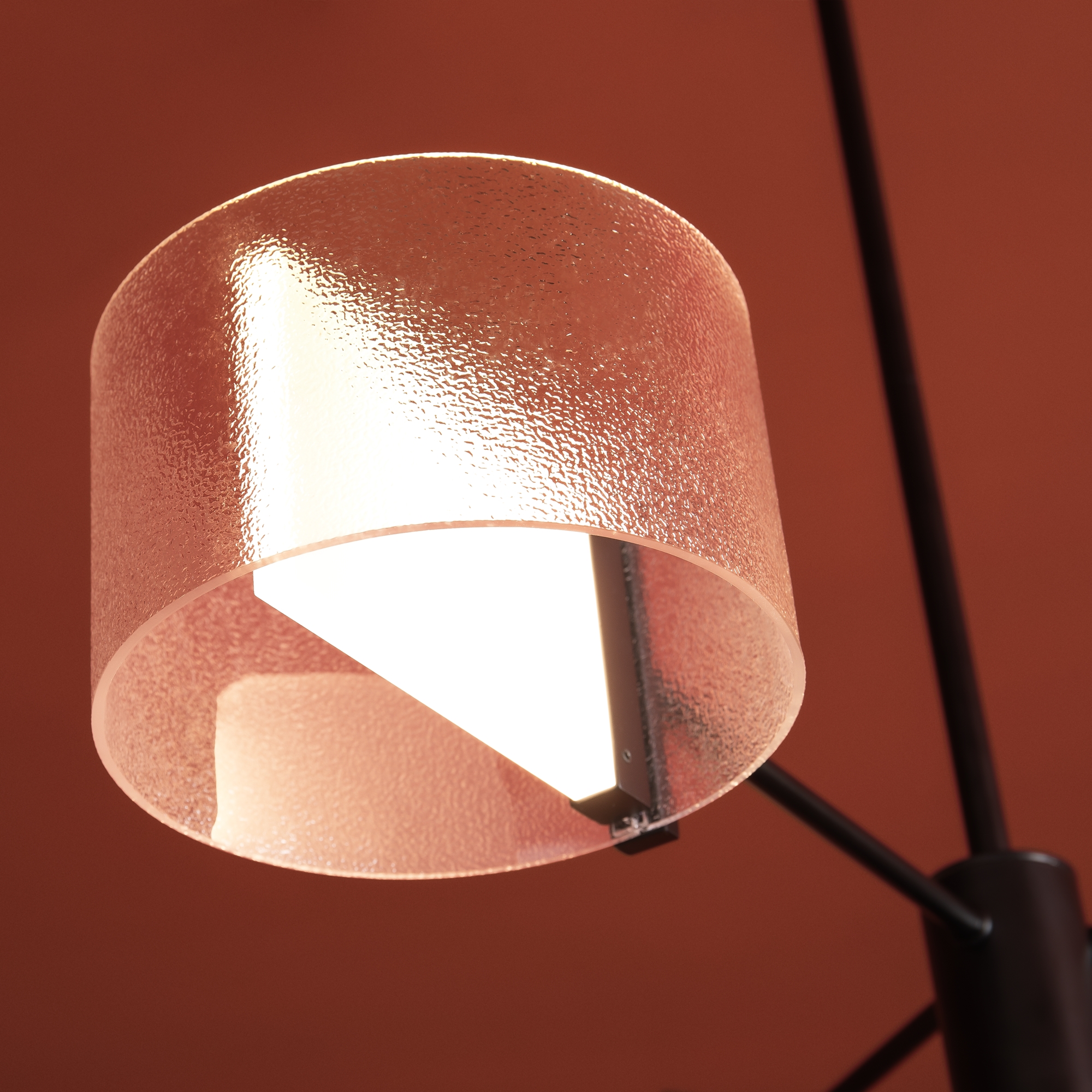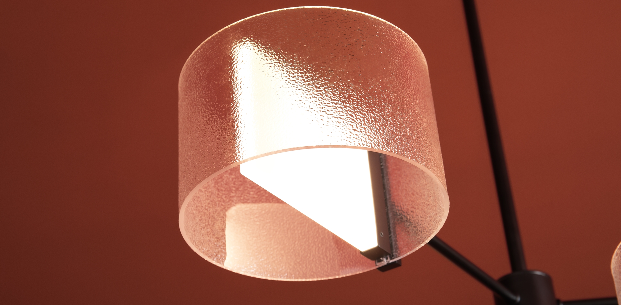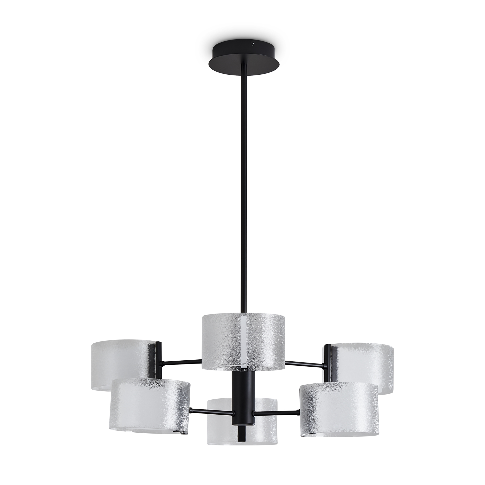 Материал арматуры — металл, цвет — черный. Потолочный, настенный и подвесной светильники оснащены LED-источниками света. Цветовая температура 3000К. Прозрачный рельефный плафон «парящий в воздухе» с эффектом замороженного стекла. Подходит для интерьеров в стиле минимализм и лайт лофт.