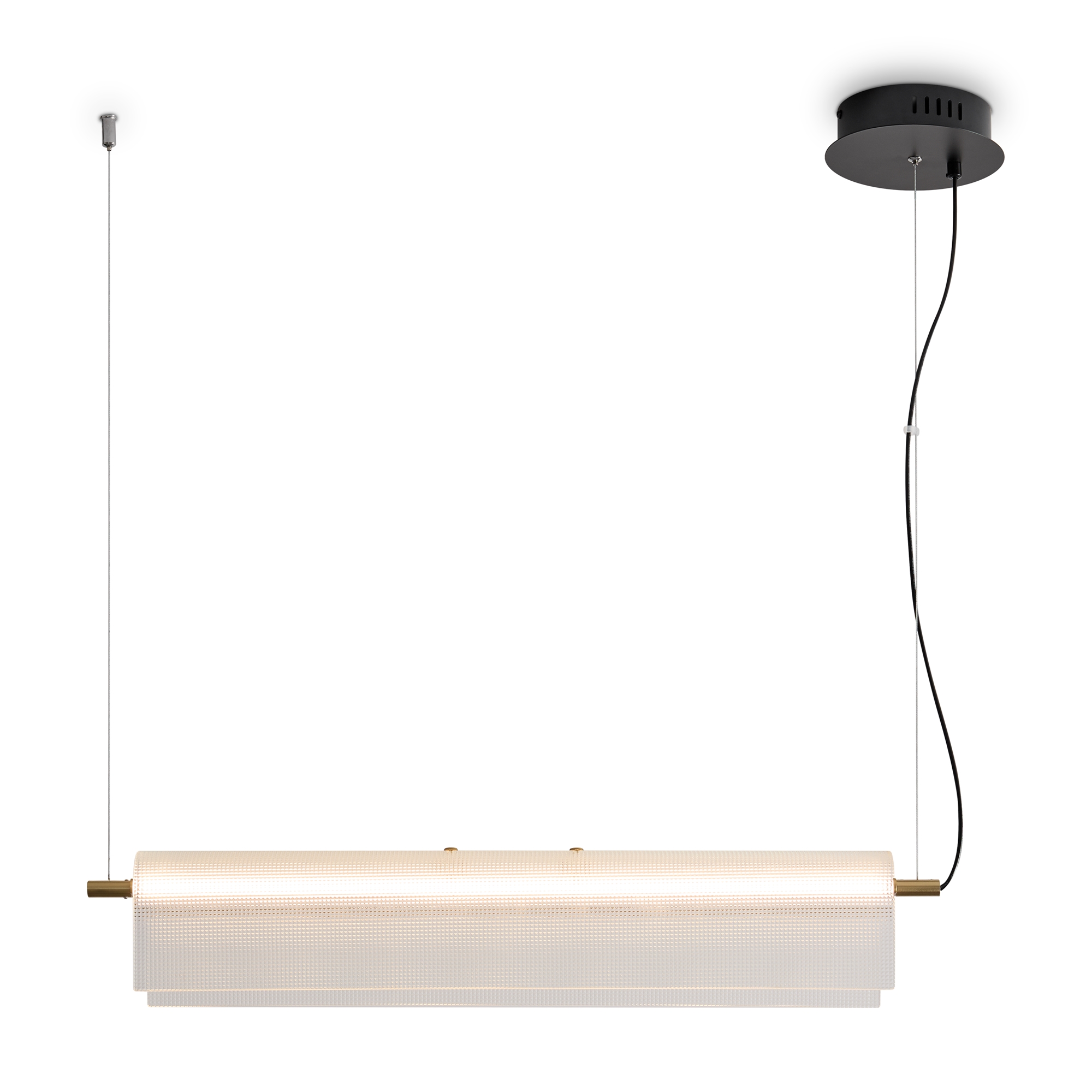 Материал арматуры — металл, цвет — черный с латунными элементами. Подвесной светильник оснащен LED-источником света с цветовой температурой 2700К. Подвесной светильник с прозрачным стеклянным рельефным плафоном в двух размерах. LED-трубка может быть использована отдельно от абажура . Подходит для современных интерьеров.