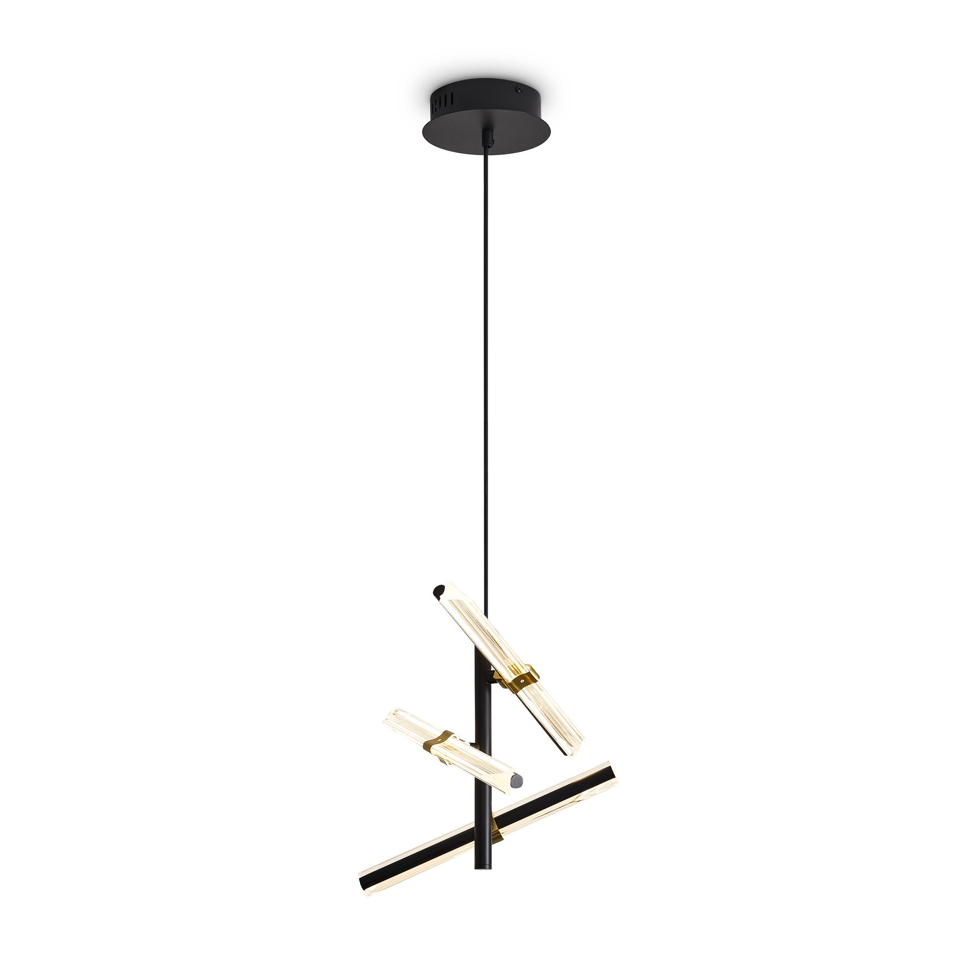 Материал арматуры — металл, цвет — черный и латунь. Все модели серии Brilliance оснащены LED-источником света. Цветовая температура 2700К. Прозрачные стеклянные рассеиватели. Регулируемая высота. Особенностью серии являются поворотные LED-трубки, позволяющие менять направление светового потока и создавать различные световые композиции.