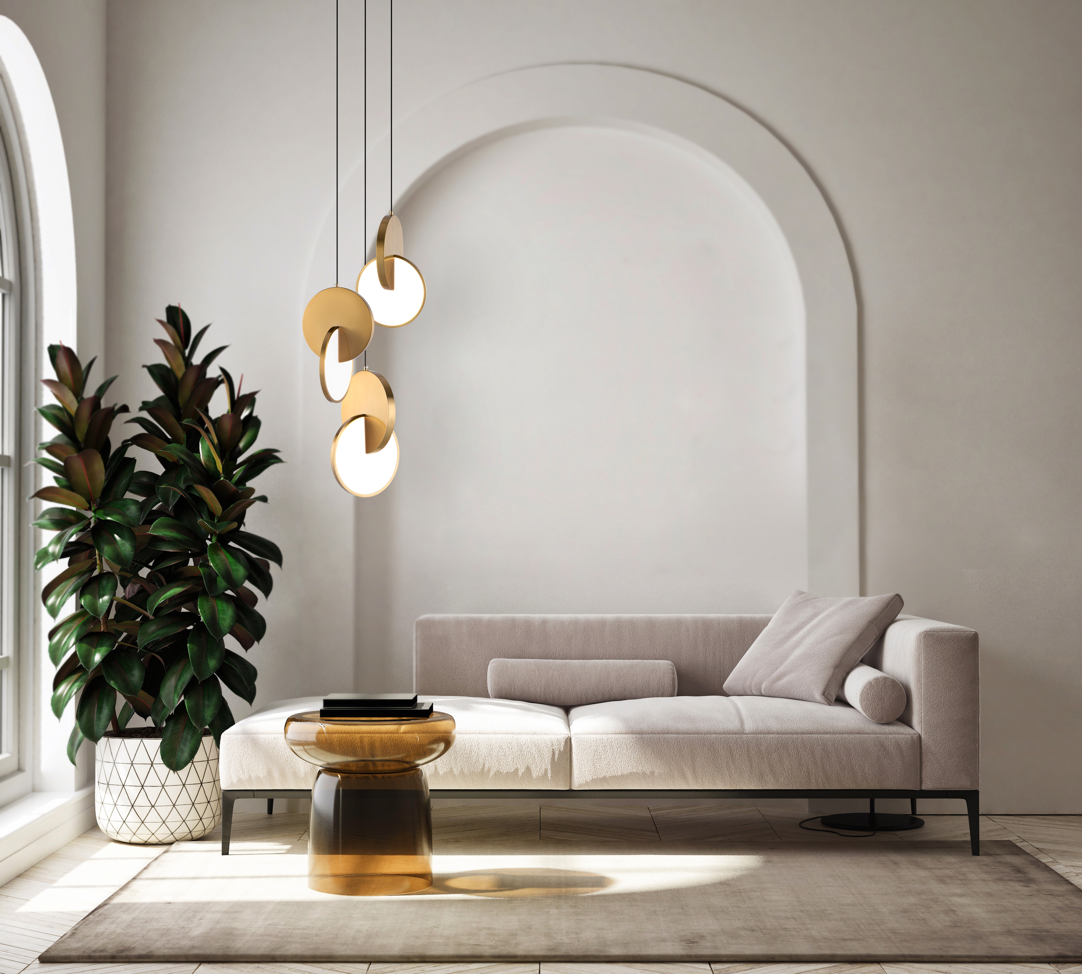 Арматура из металла в двух оттенках: хром, латунь. В основе композиции – два округлых элемента с зеркальной поверхностью. Трендовый футуристический силуэт. LED-источник света с температурой 4000К.
