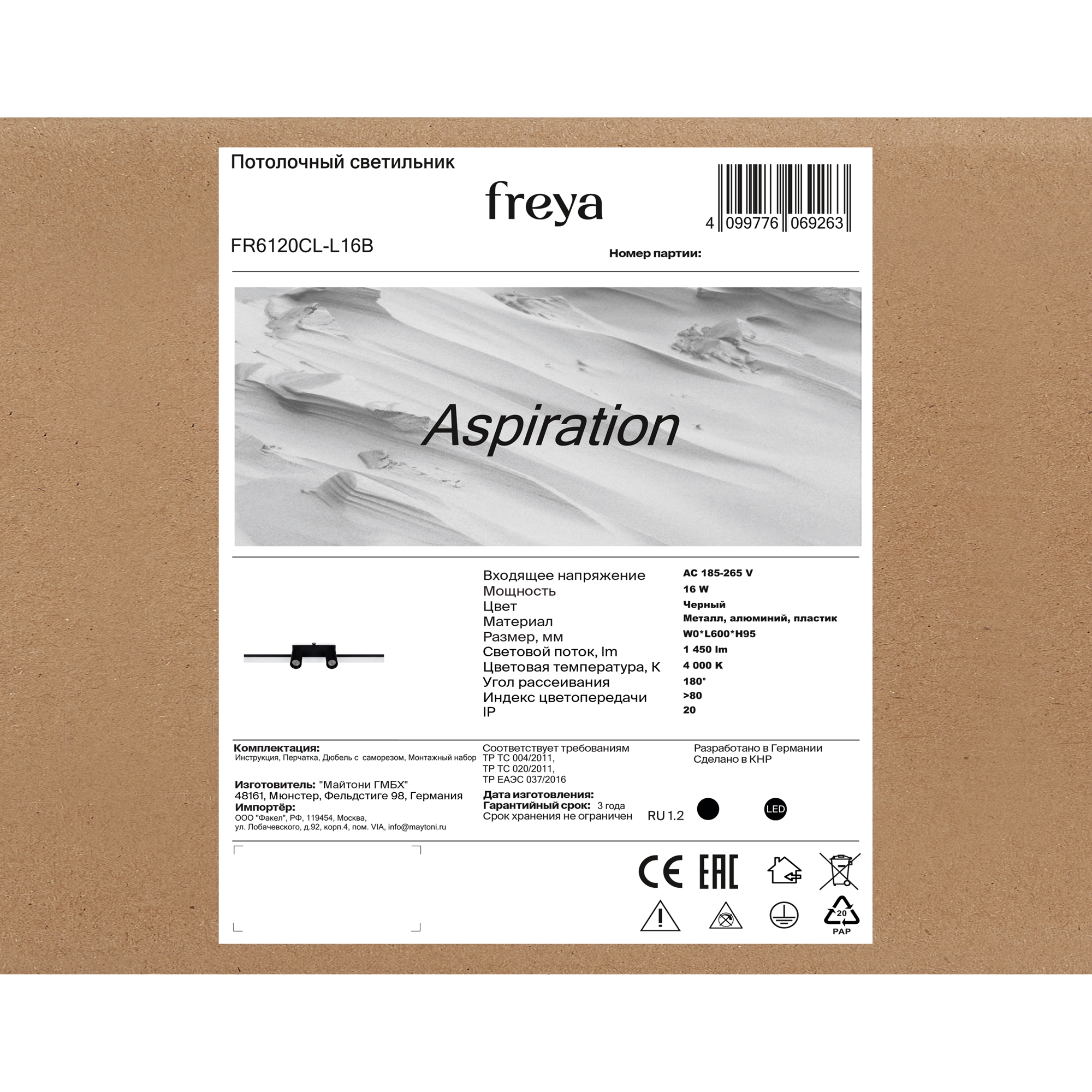 Алюминиевый корпус, цвет - графит. Многослойный каскадный рассеиватель серебристого цвета скрывает LED-источник света, предотвращая эффект слепимости и мягко рассеивает свет. Цветовая температура - 3000К. Степень защиты - IP54.