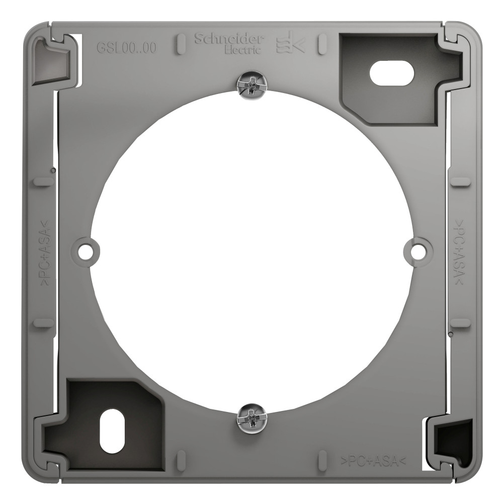 Коробка Systeme Electric (ранее Schneider Electric) серии Glossa (цвет алюминий) наружного монтажа. Позволяет установить любую функцию скрытого монтажа на стену (как изделие открытого монтажа). Выполнена из материала PС+ASA, стойкого к УФ-излучению и появлению царапин.