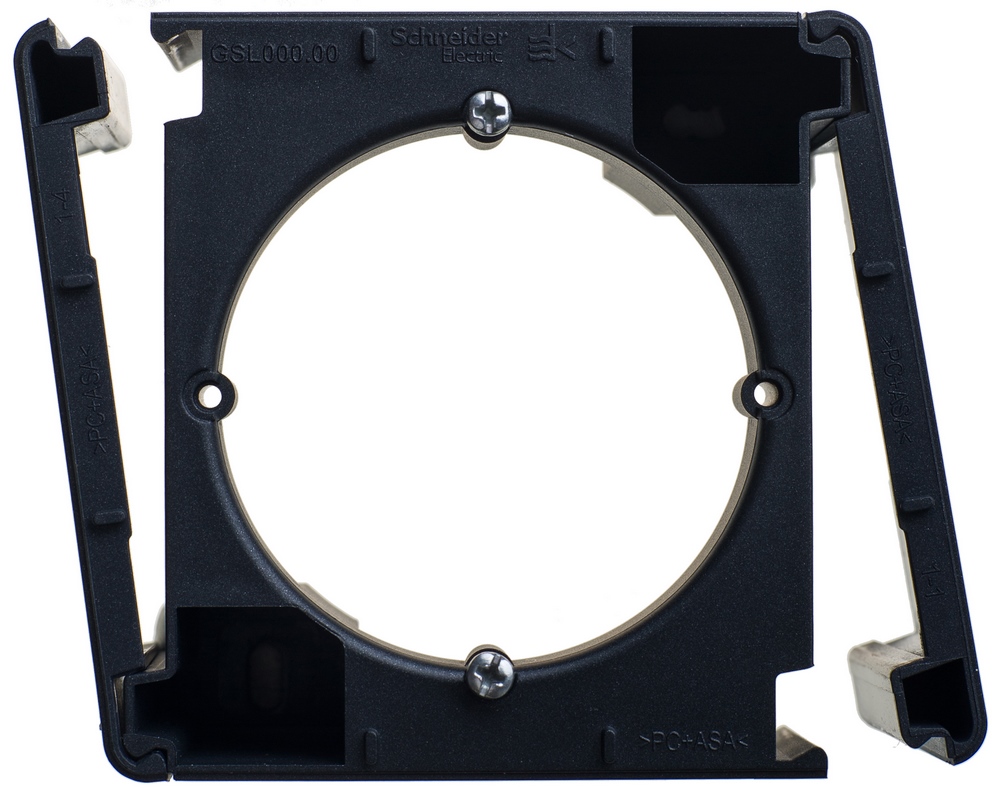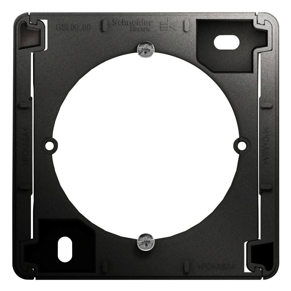 Коробка Systeme Electric (ранее Schneider Electric) серии Glossa (цвет антрацит) наружного монтажа. Позволяет установить любую функцию скрытого монтажа на стену (как изделие открытого монтажа). Выполнена из материала PС+ASA, стойкого к УФ-излучению и появлению царапин.