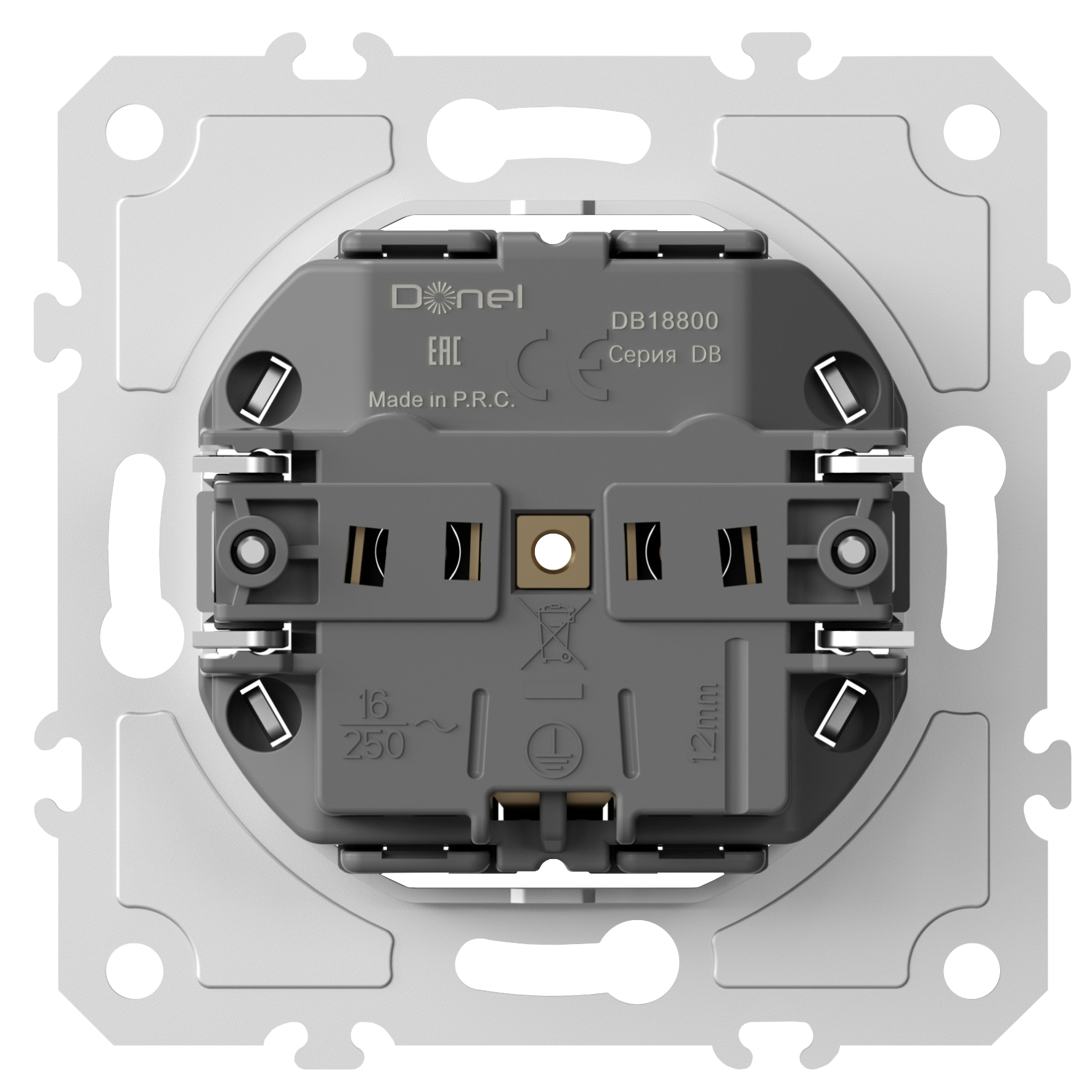 Механизм розетки Schuko с заземлением 16А 250В~ на винтах, серия DB