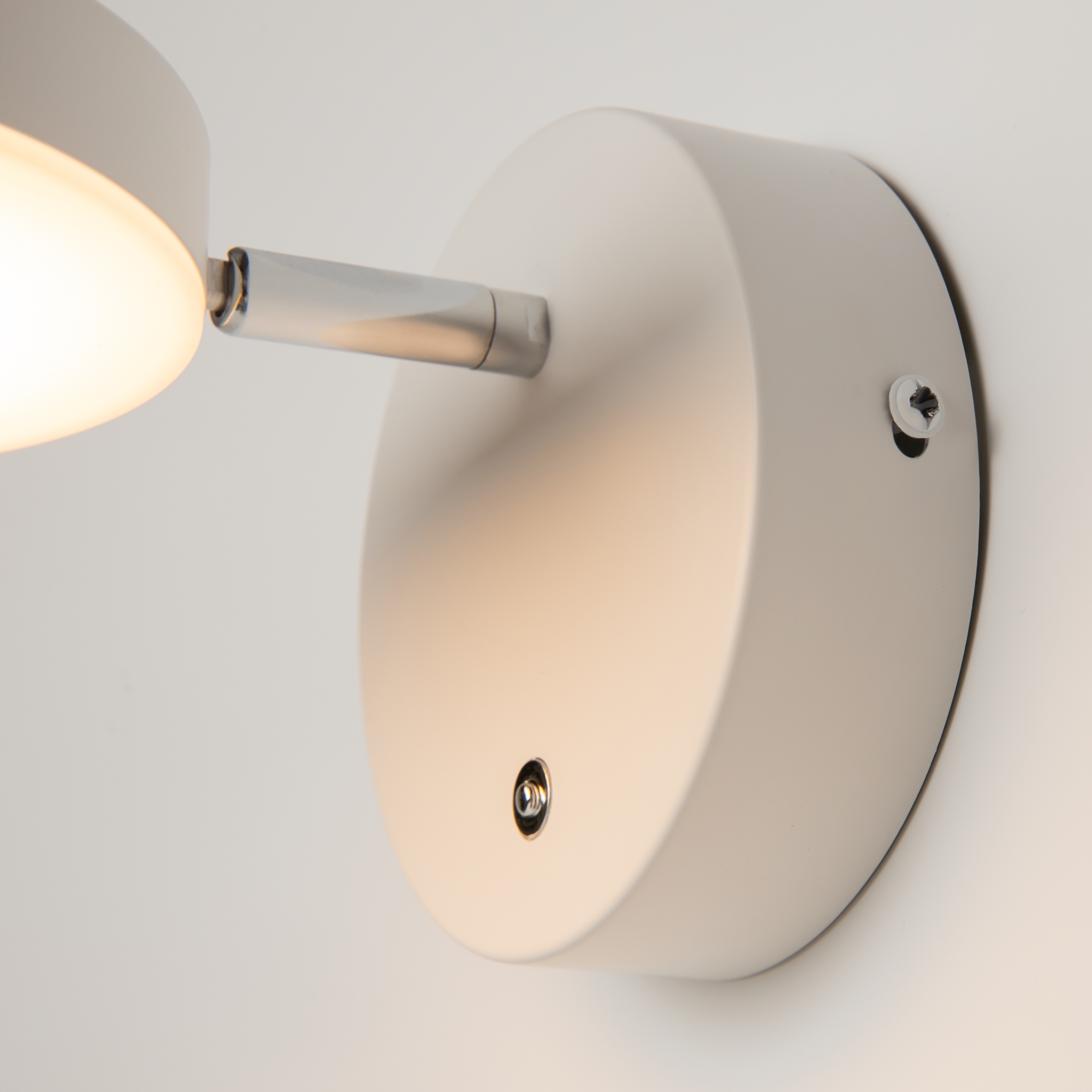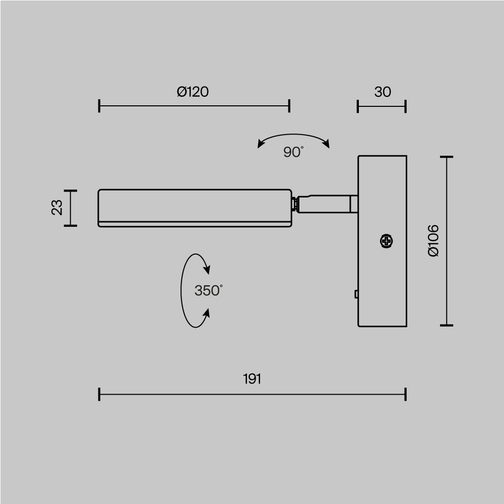 Плафоны и арматура из металла. Цвет рассеивателя — белый, арматура черная или белая. Конструкция предусматривает шарнирный механизм, позволяющий регулировать направление света и высоту светильников. Плафоны вращаются на 90 и 360° (в вертикальной и горизонтальной плоскостях). Угол рассеивания — 120 градусов. Тип света — рассеянный.