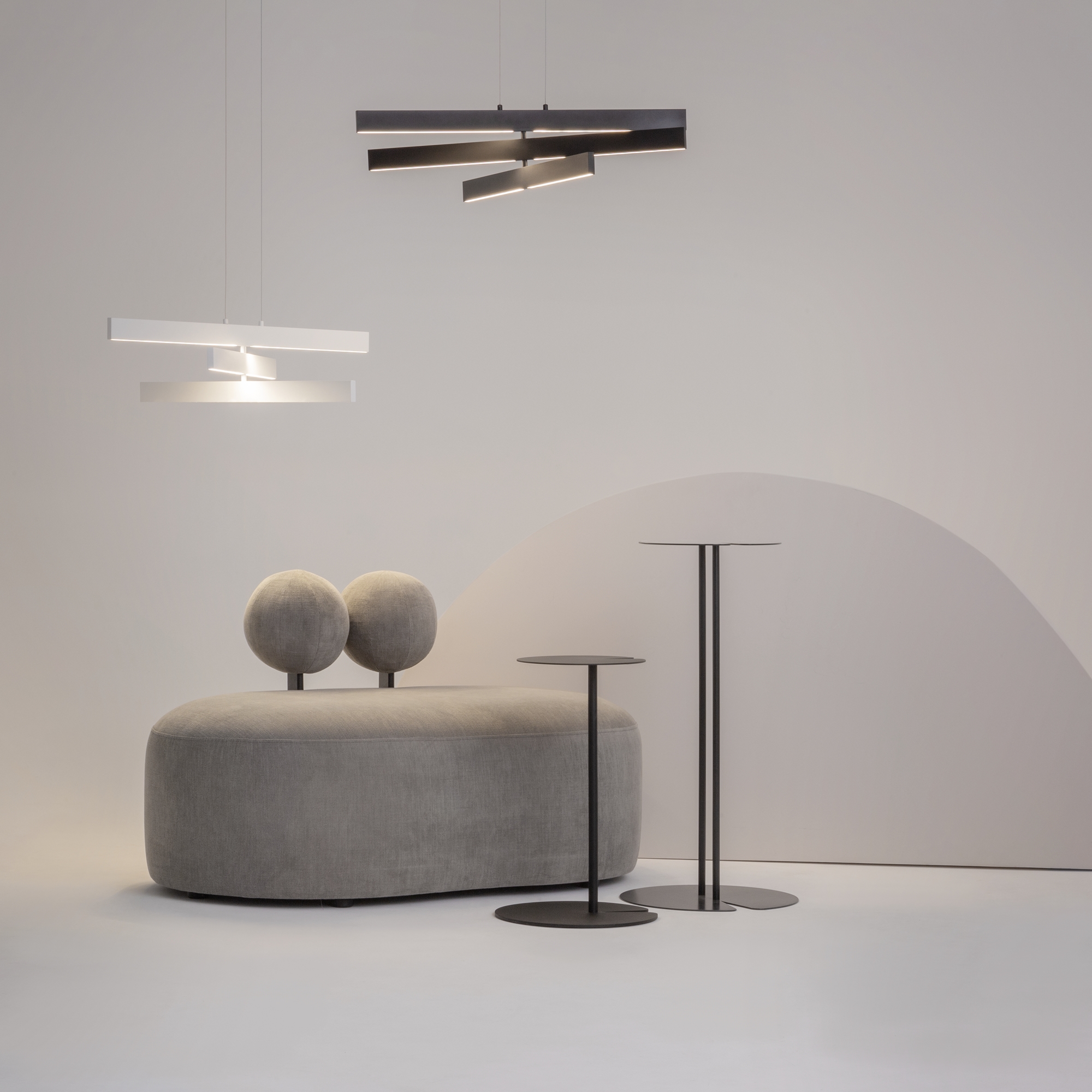 Материал арматуры – металл. Оттенки – белый, черный. Подвижная конструкция для регулировки уровня освещенности и дизайна. Безопасные токоведущие тросы. LED-источники света с цветовой температурой 4000К.