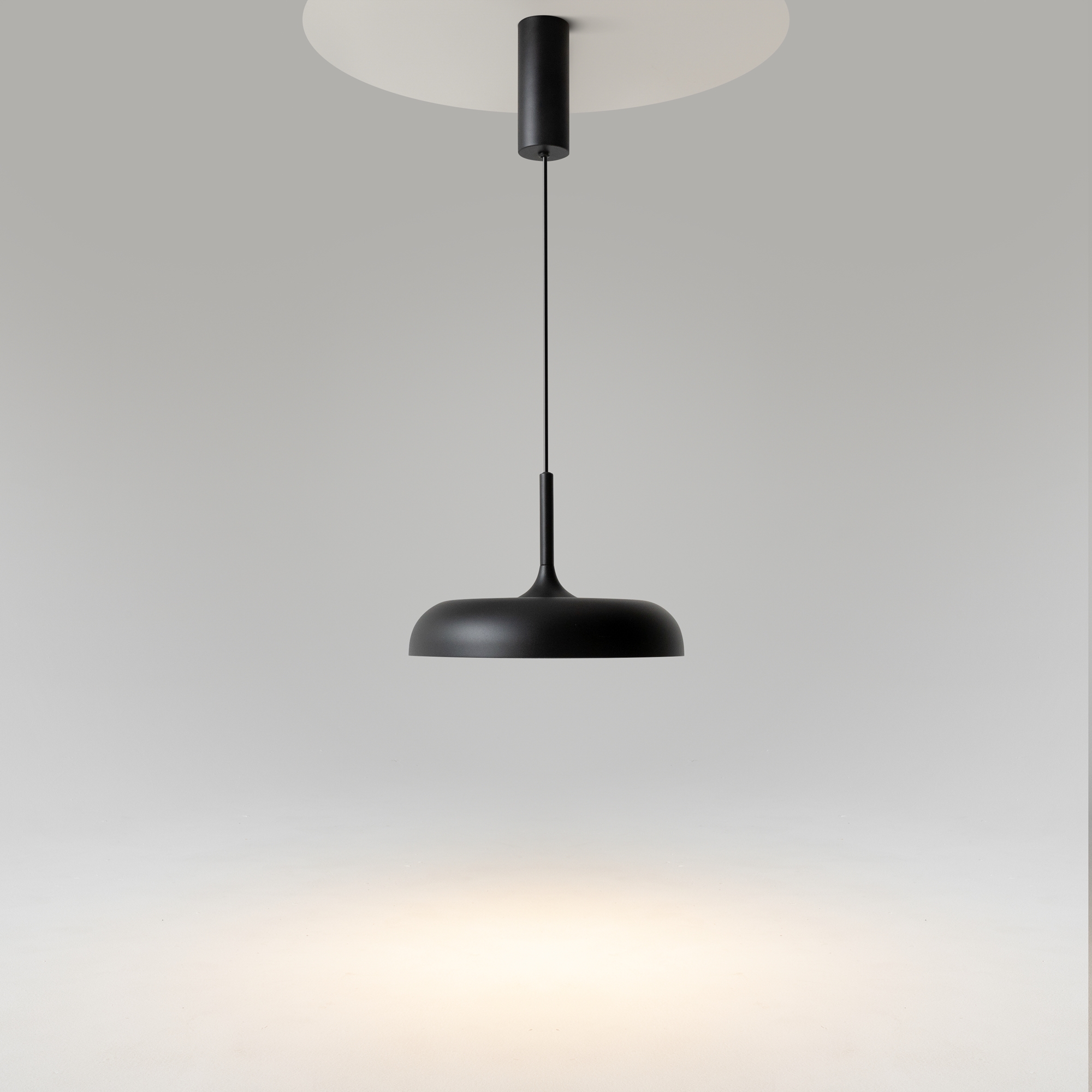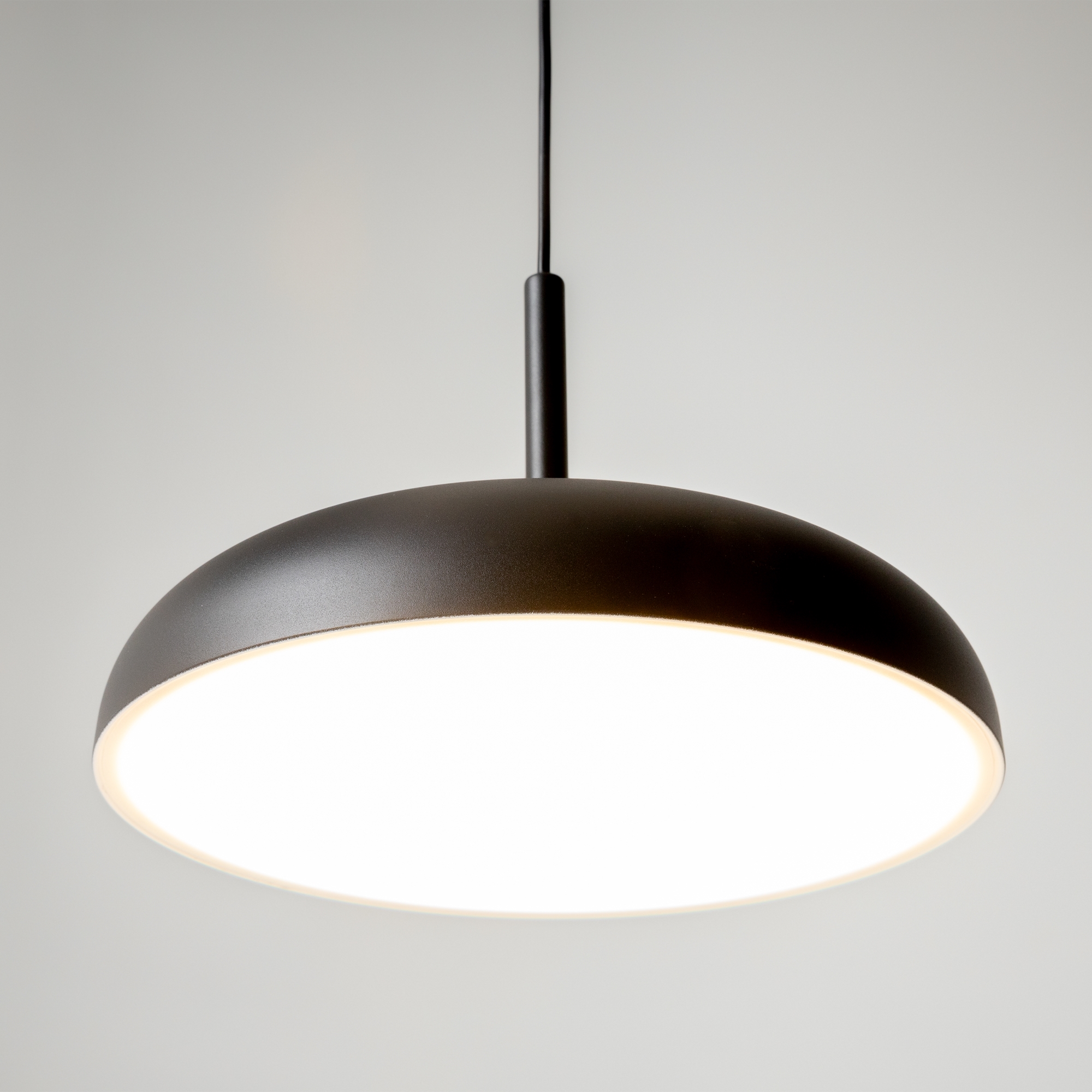 В минималистичной серии Gerhard представлены светильники в двух диаметрах (300 мм и 400 мм), двух цветах (черный и белый), а также в двух форматах. Первое поколение светильников – классические – направленный вниз свет, длина провода 3 метра. Второе поколение светильников – функциональные – двунаправленный источник света (вверх и вниз) и лифтовый механизм с проводом 2 метра, что позволяет менять высоту расположения светильника одним движением. LED-источник света с цветовой температурой 3000K.