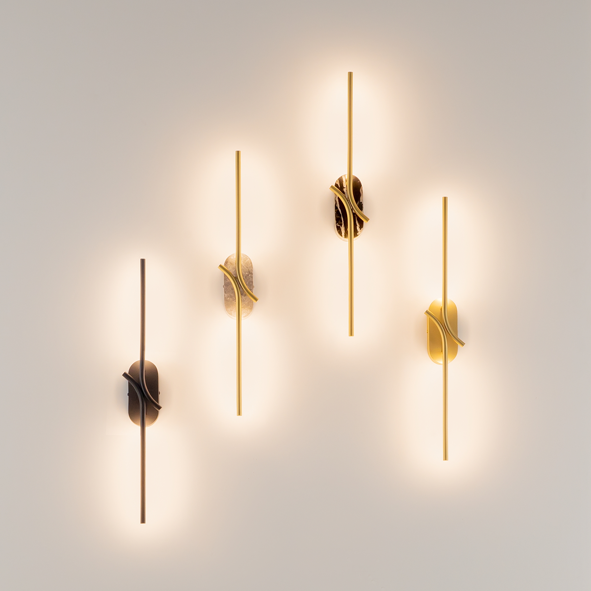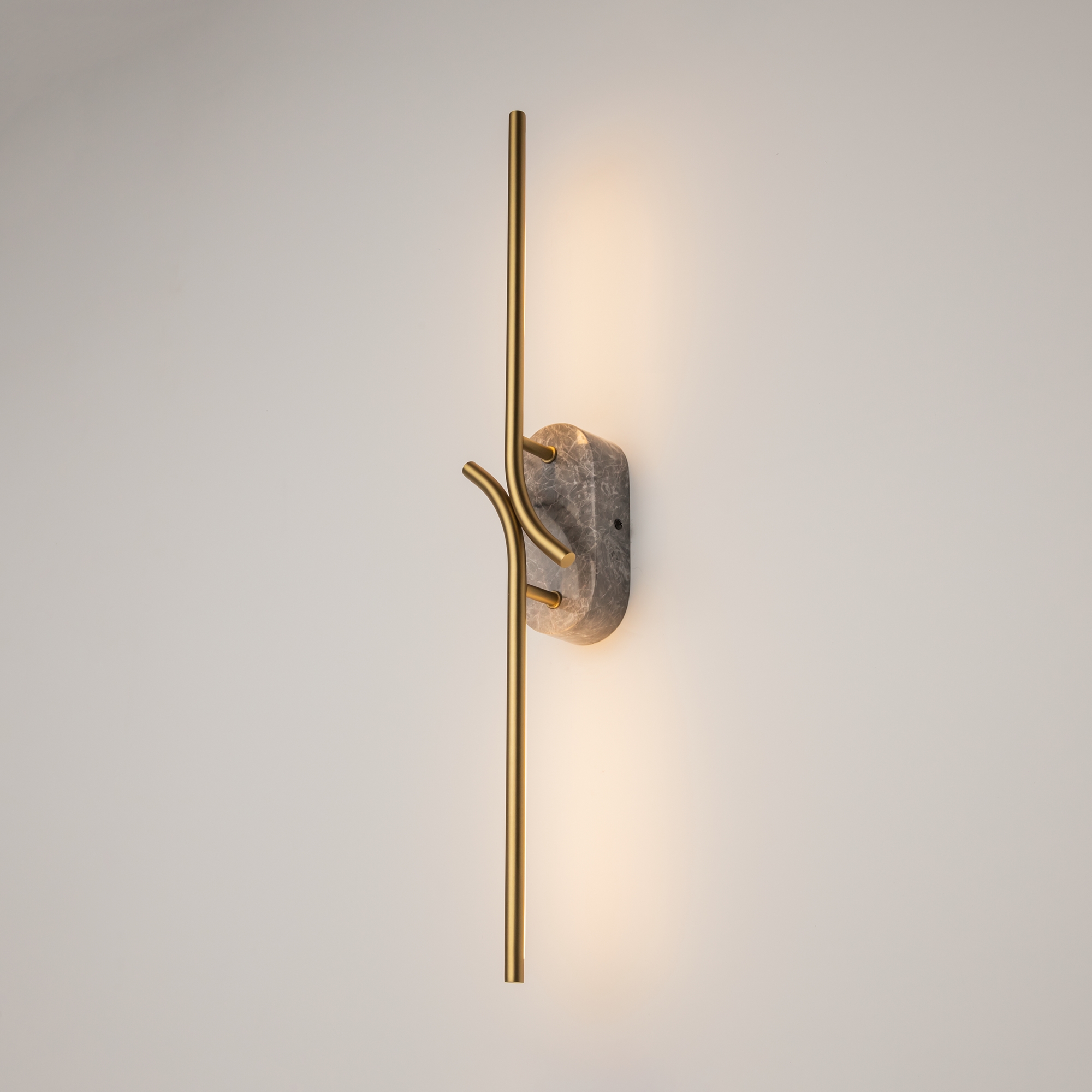 Два варианта основания корпуса. Металлический, цвета – черный и сатинированная латунь. Мрамор, цвета - черный и серый. Плафон-трубка из металла со скрытым рассеивателем. Серия отражает эстетические чувства эпохи Возрождения, искусно сочетая цветовые палитры, формы и материалы, характерные для того периода. LED источник света. Цветовая температура - 3000К.