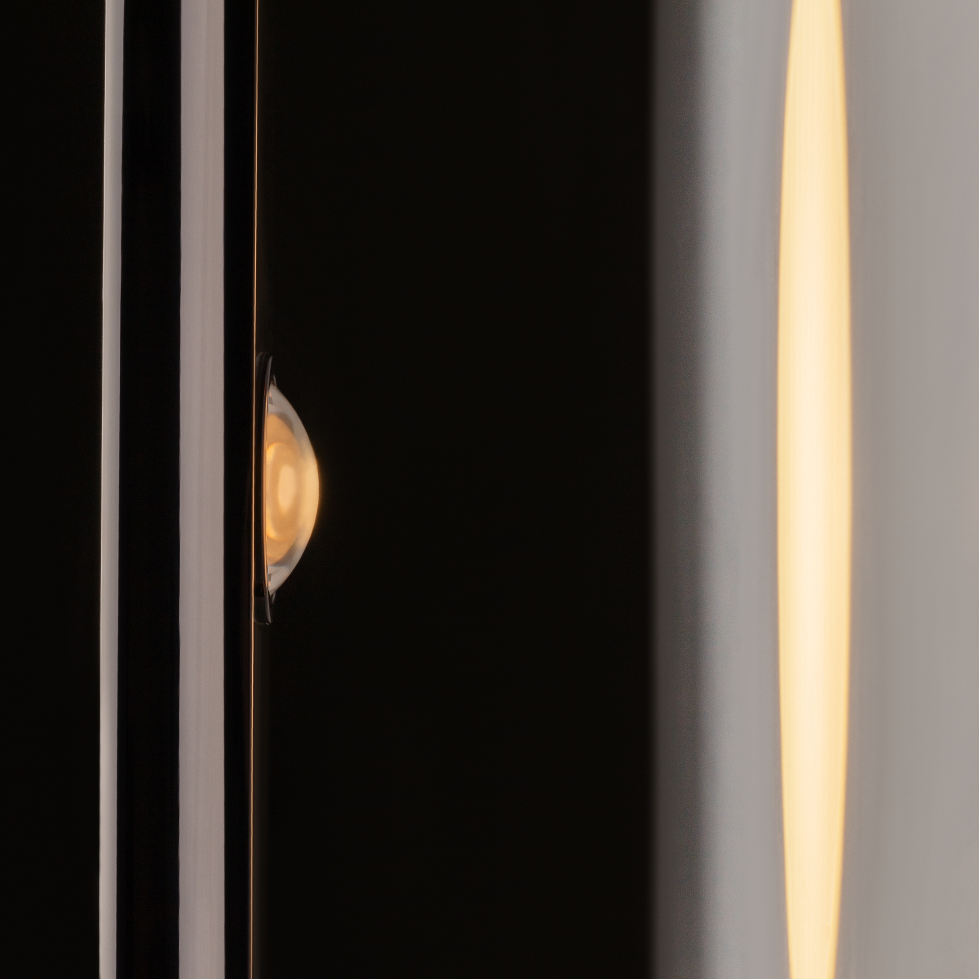 Металлическая арматура, цвета: черный, хром, золото. Источник света: LED-светодиод. Световая температура 3000К. Свет переотраженный, угол рассеивания 100 градусов. Дизайнерское решение с использованием линзы, создающей акцентный круг на стене и эффекта переотражения. Поверхность арматуры глянцевая, полузеркальная. Бра подойдет для зонирования помещений.