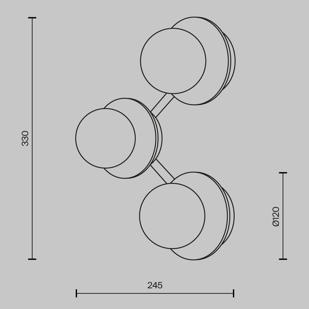 Металлическая арматура цвета латуни с сатинированным эффектом. Яркие небольшие плафоны диаметром 80 мм цвета янтаря. Встроенный LED источник света дает мощный световой поток с цветовой температурой 3000К и углом рассеивания 120 градусов. Подвесные светильники выполнены в виде перевернутой арки и в трендовой форме круга, расположение плафонов настенного светильника напоминает созвездие.