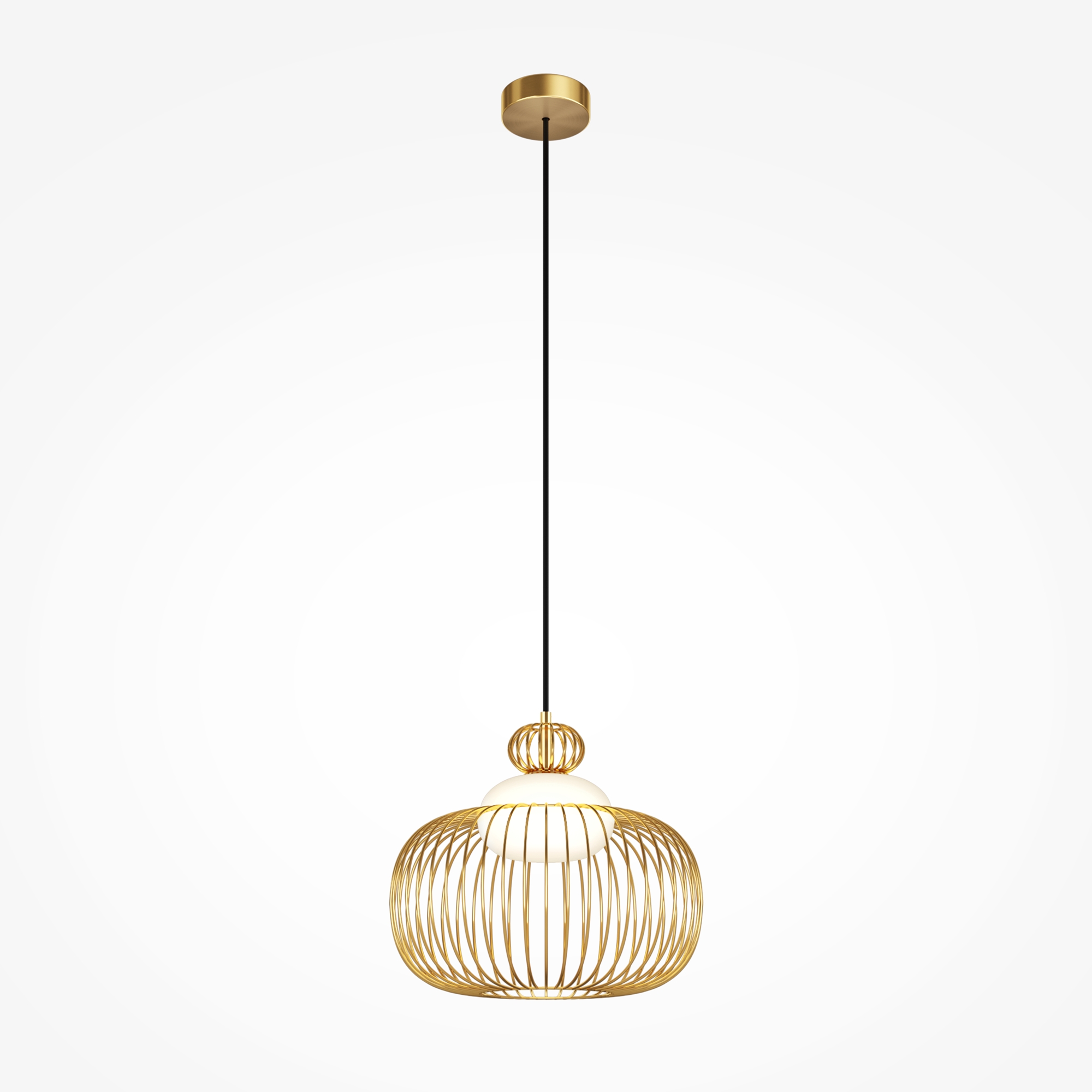 Цвет арматуры — латунь. Материал арматуры — металл. Абажур — каркас из проволоки, стекло. Оригинальный дизайн с эффектом левитации. Стеклянный рассеиватель со специальным выступом для крепления проволочного плафона. Два типа подвесных светильников: компактные со сменными лампами и крупный с LED-модулем для двунаправленного освещения. Провод длиной 3 метра для высоких потолков. Регулируемая высота подвеса. Универсальный дизайн для неоклассики, эклектики и фьюжн.
