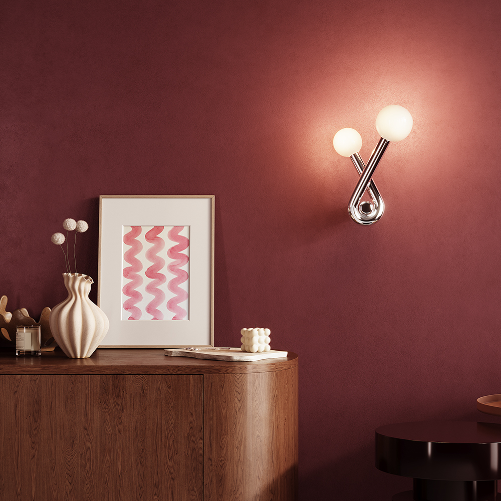 Серия отличается массивной металлической арматурой с органическими изгибами. Представлена в четырех цветовых вариантах: матовый черный, глянцевые латунь, платина и молочно-бежевый. Плафон выполнен из глянцевого белого стекла, скрывающего сменный источник света с цоколем G9. Светильники создают выразительные акценты в интерьере, подходят как для одиночного размещения, так и для создания сложных инсталляций. Рекомендуется для пространств, где важную роль играет художественная составляющая.
