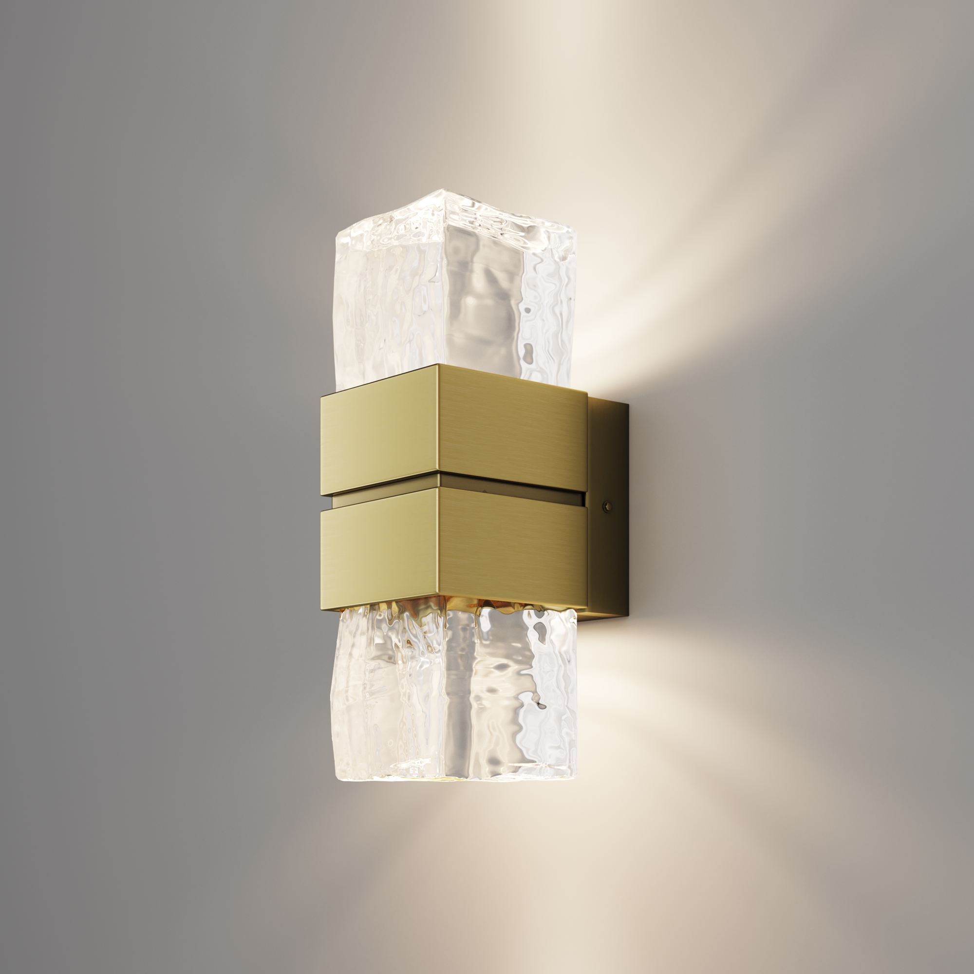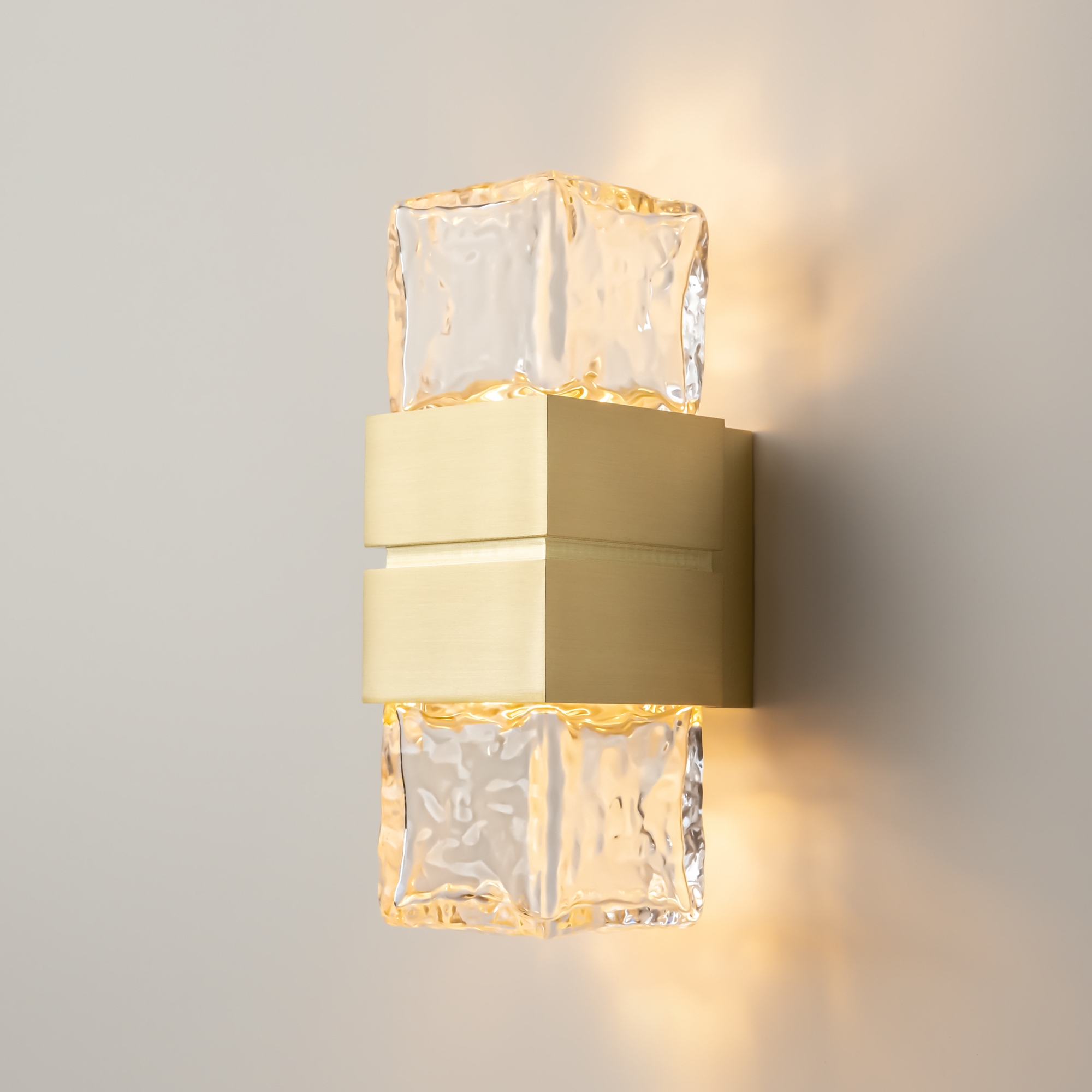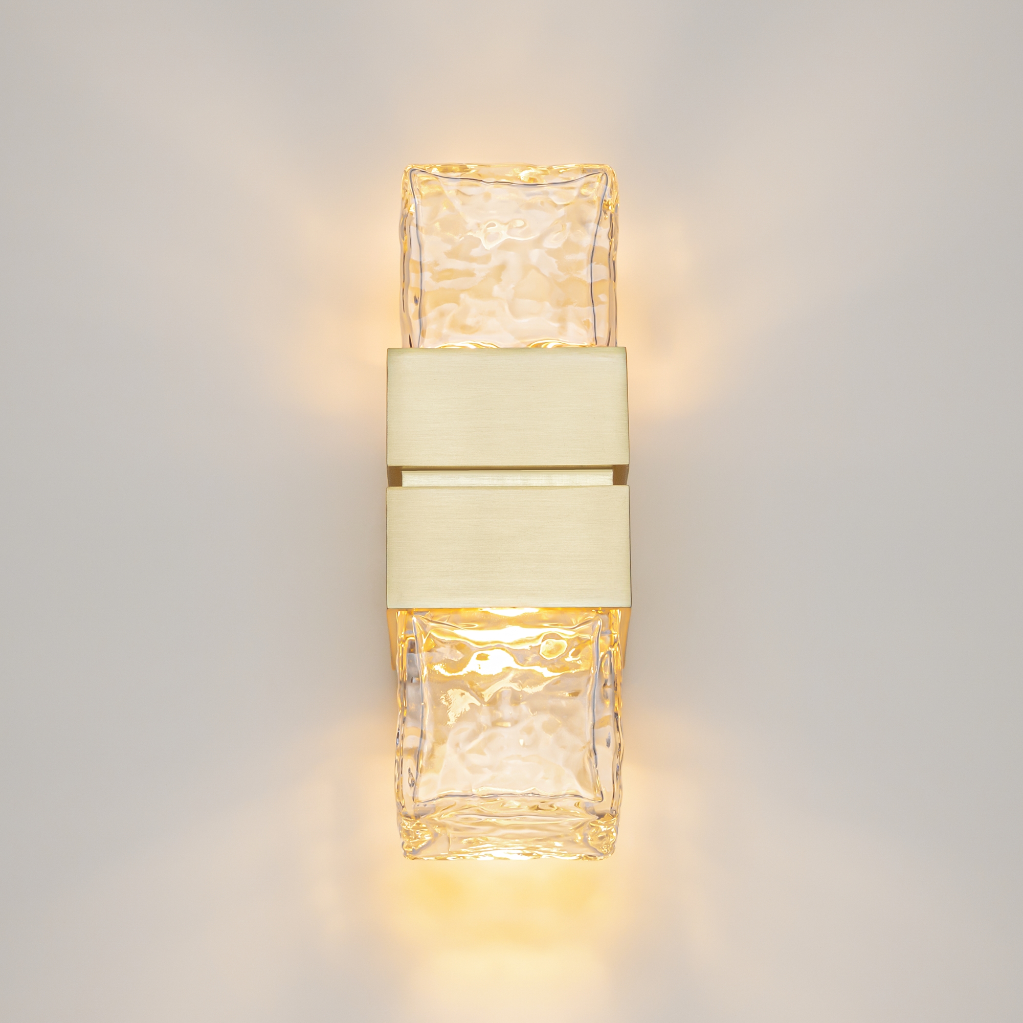 Дизайн серии воплощает хрупкую красоту и загадочное сияние арктических пейзажей. Трендовая массивная арматура выполнена из металла в цвете сатинированной латуни. Геометрический силуэт. Плафоны изготовлены из "мятого" стекла ручной работы, что обеспечивает уникальный световой рисунок на поверхностях. Встроенный LED-источник света с цветовой температурой 3000K создает теплое и уютное освещение. Светильник предназначен для интерьеров премиум-класса: спален, гостиных и офисов.