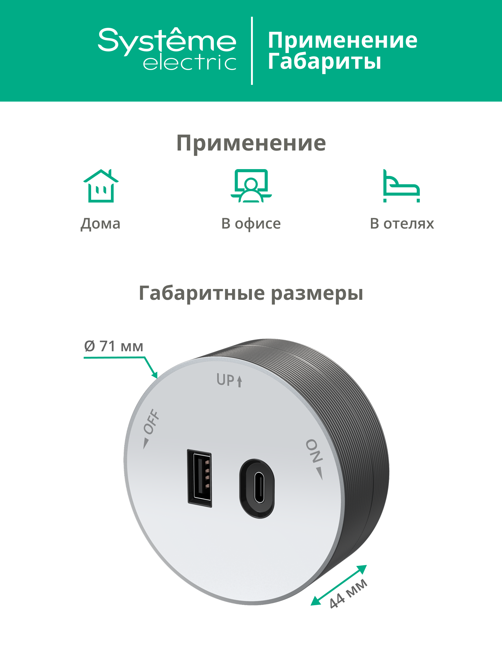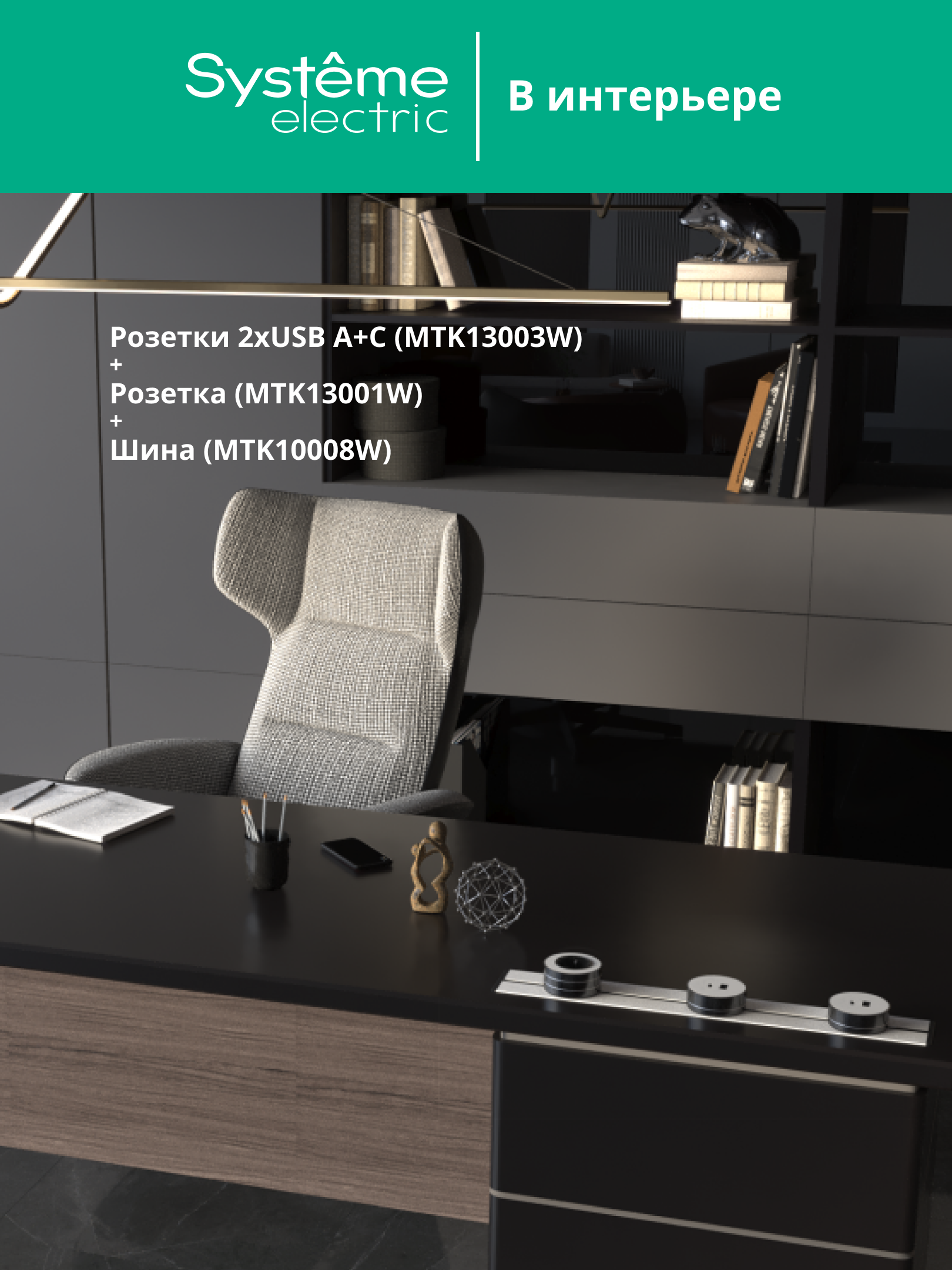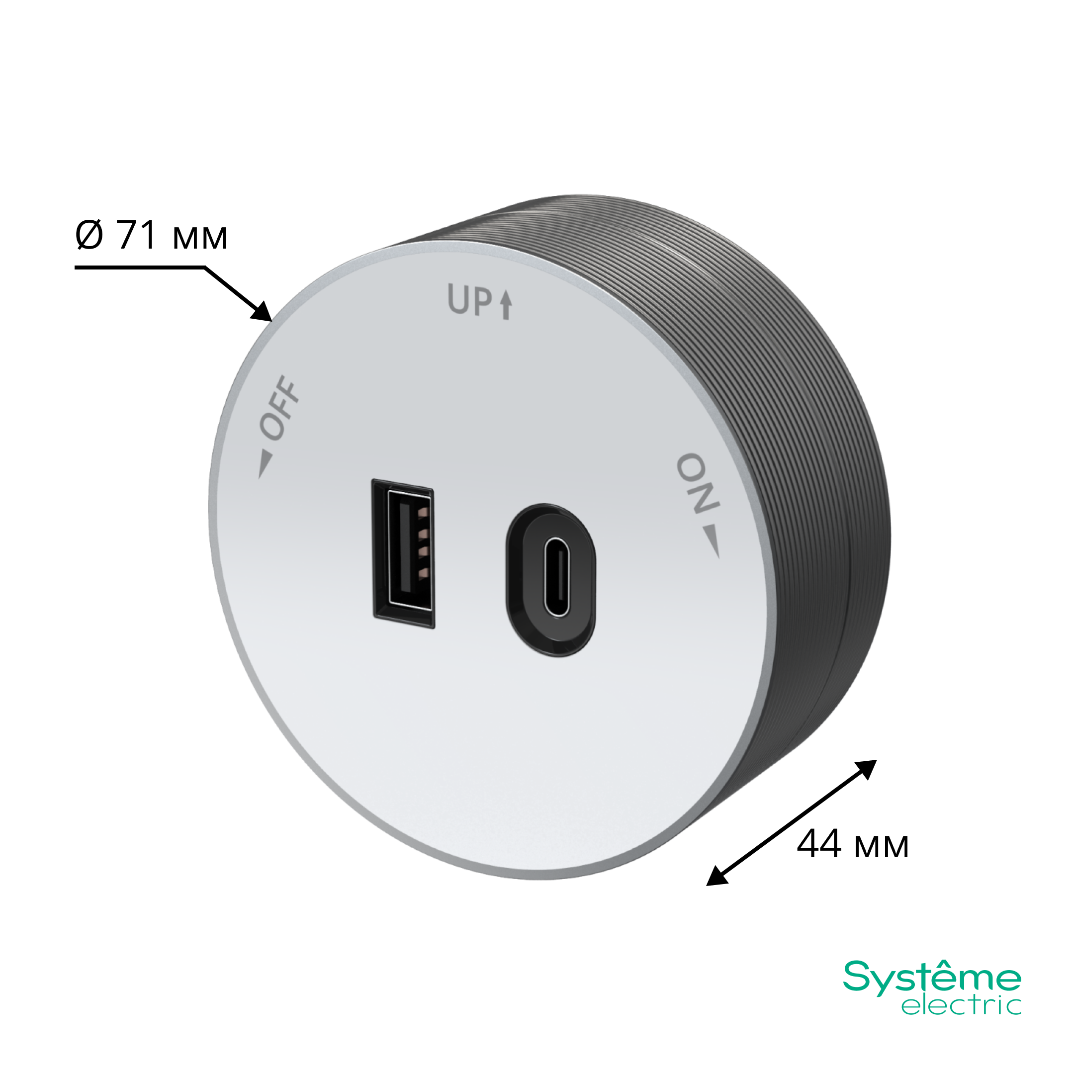 Розетка трековой системы MultiTrack (Systeme Electric) 2хUSB (тип А + тип С) 18 Вт, 5В/3А, 9В/2А, 12В/1.5А, цвет - белый. Устанавливается в шину MultiTrack. Быстрая и безопасная установка, не требующая привлечения специалиста: достаточно вставить розетку в шину и повернуть на 90 градусов до упора.