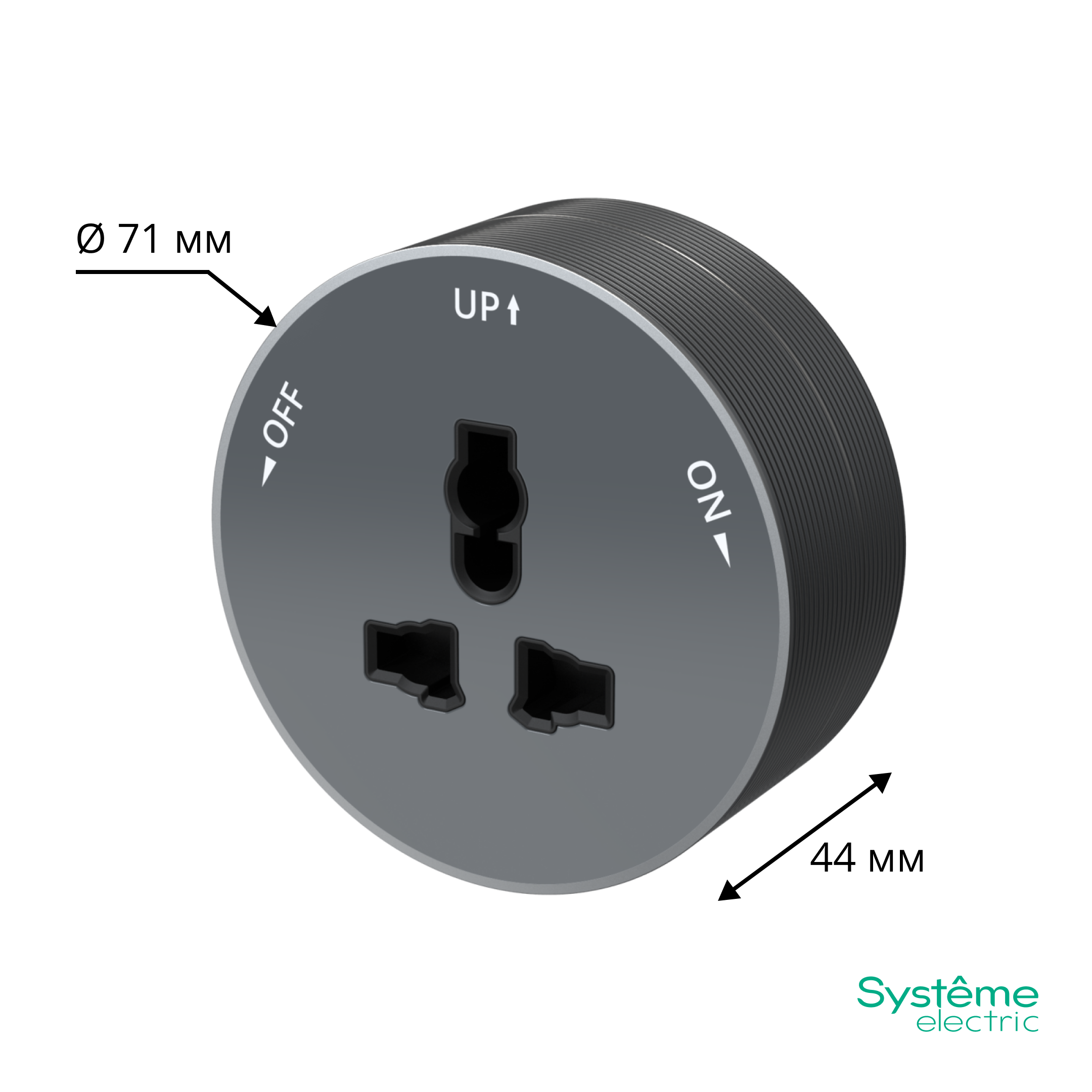 Розетка трековой системы MultiTrack (Systeme Electric) универсальная (подходит к вилкам большинства стандартов) 13А/250В, цвет - графит. Устанавливается в шину MultiTrack. Быстрая и безопасная установка, не требующая привлечения специалиста: достаточно вставить розетку в шину и повернуть на 90 градусов до упора.