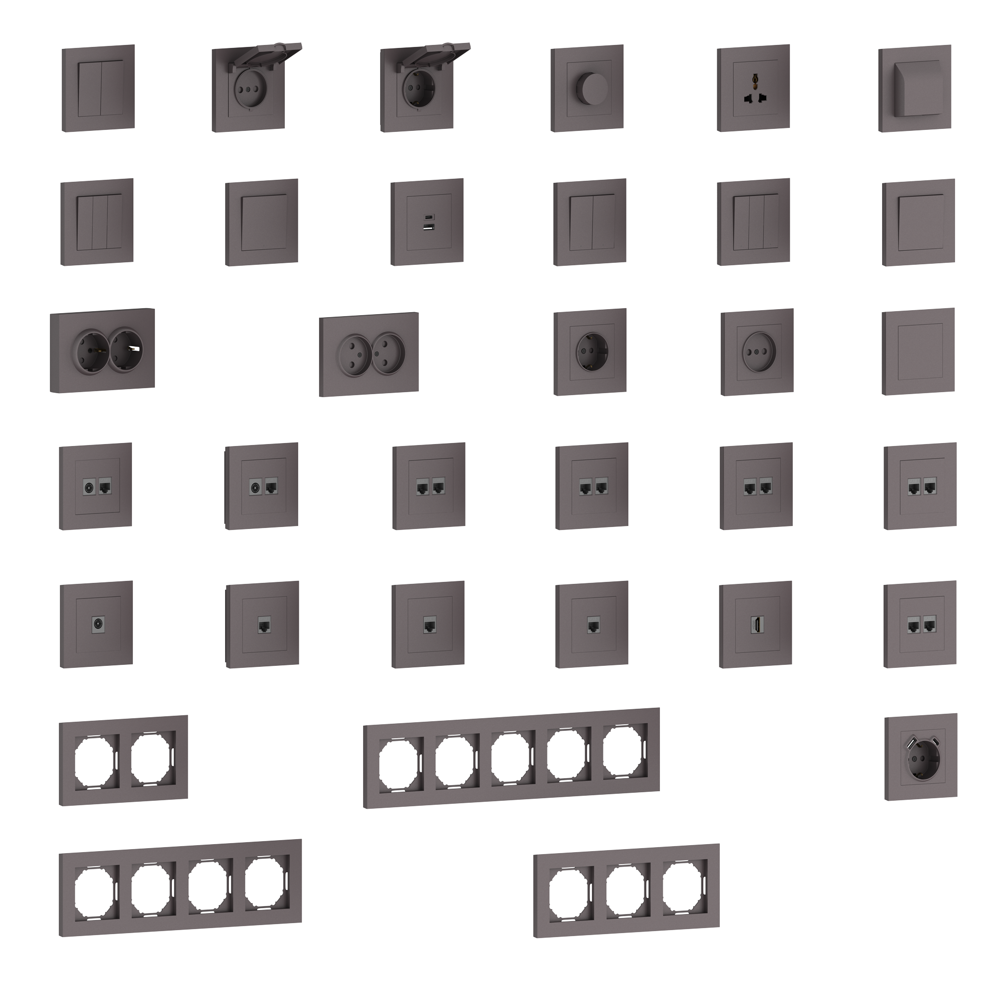 Накладка для розетки Schuko с зарядным устройством USB A+C, со шторками 16A 250В, мокко, серия A07