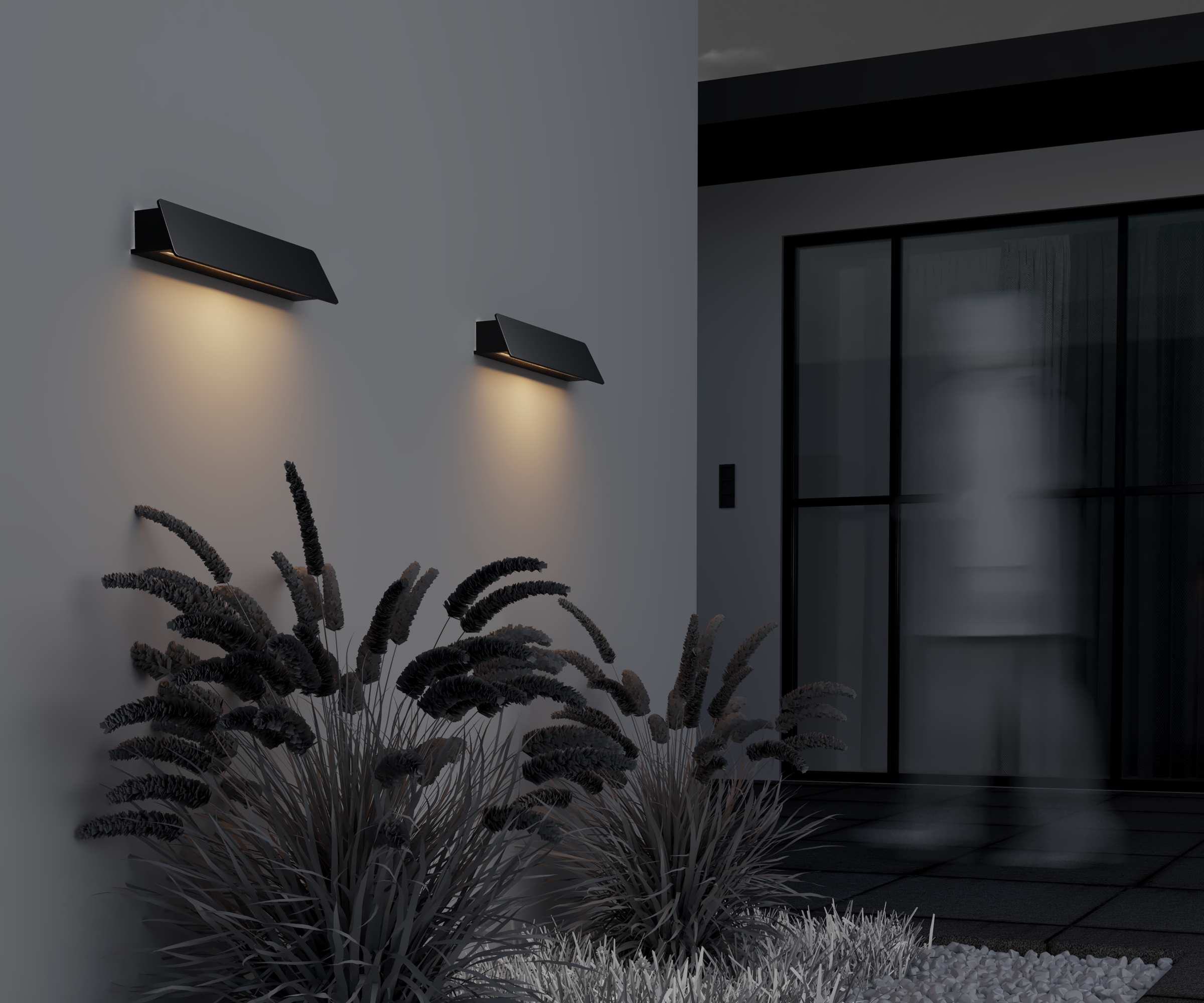 Материал корпуса - алюминий, цвет - графит. Скрытый LED- источник света - эффект невидимого света. Цветовая температура - 3000К. Подходит для подсветки проходных и входных зон. Степень защиты - IP54.