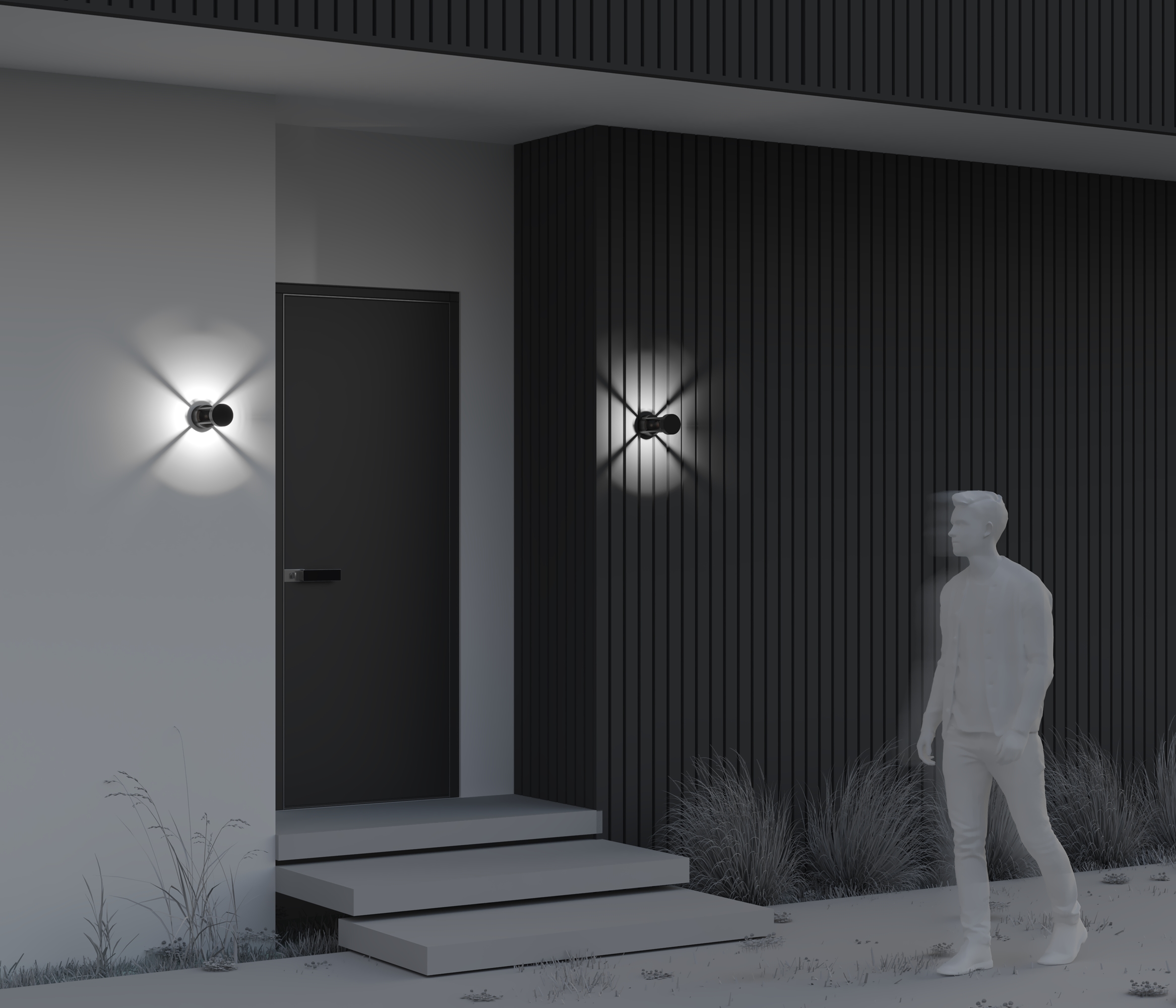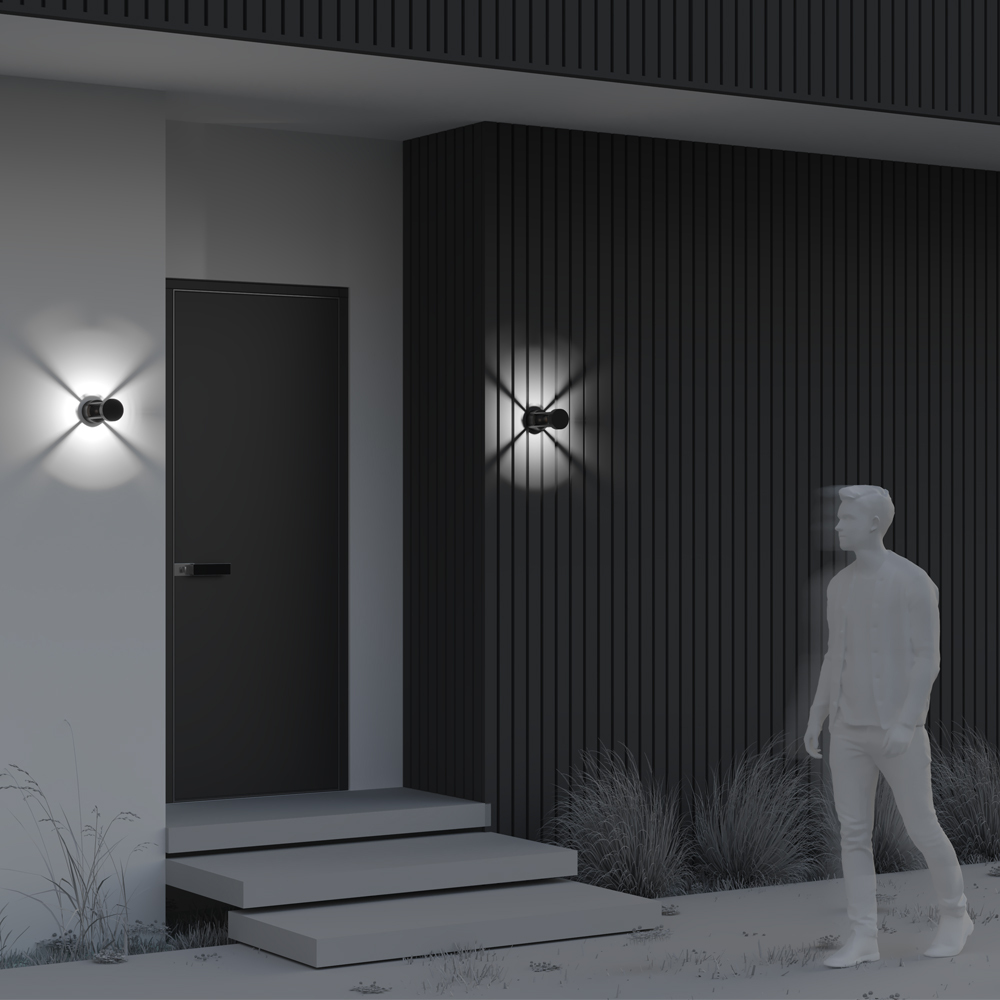 Металлический корпус, цвет - графит. Узорное свечение через призму линий округлого корпуса. LED-источник света - цветовая температура - 3000К. Настенную модель можно использовать в качестве ландшафтной. Высокая степень защиты - IP65.
