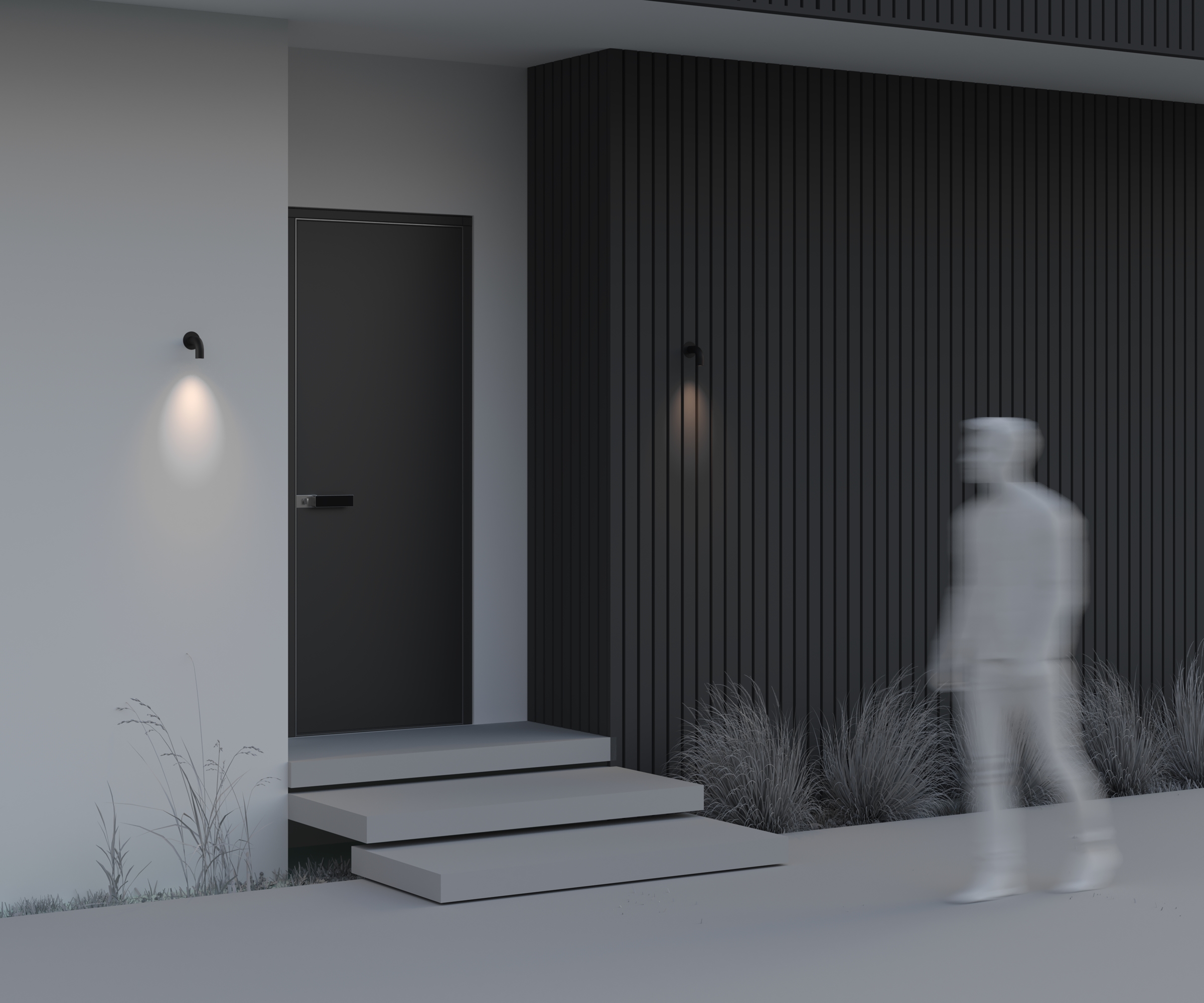 Арматура — алюминий. Цвет арматуры — графит. LED источник света. Цветовая температура 3000К. Степень защиты — IP 65. CRI >80. Серия ландшафтных светильников и бра в черном цвете.