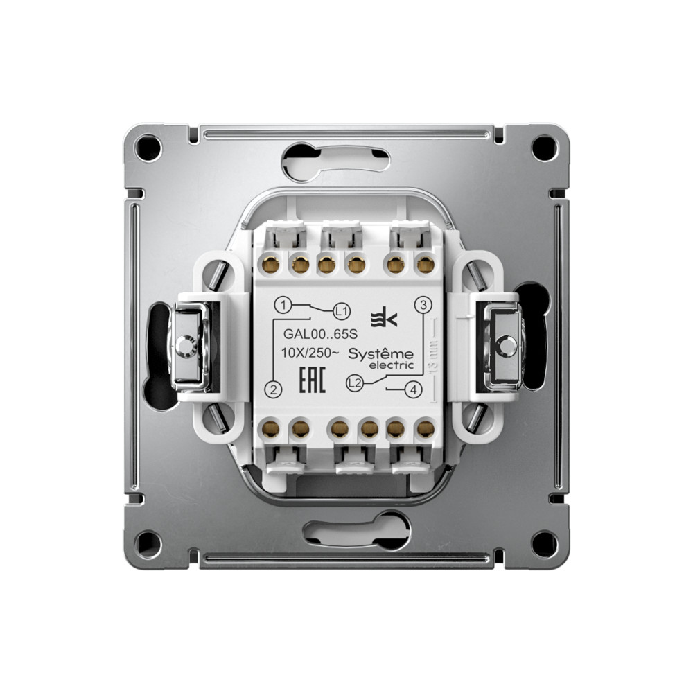 Механизм с быстрозажимными клеммами Systeme Electric серии ArtGallery в цвете карбон переключателя 2-клавишного подходит для сетей 250 В, на ток 10 А. С помощью новых быстрозажимных клемм монтаж стал быстрее. Для подключения не требуется отвертка. К изделиям в этом роскошном цвете приятно прикоснуться. Лицевые детали из качественного ABS-пластика, устойчивого к царапинам и УФ-излучению. Лучший промышленный дизайн (по итогам премии Минпромторг 2023).