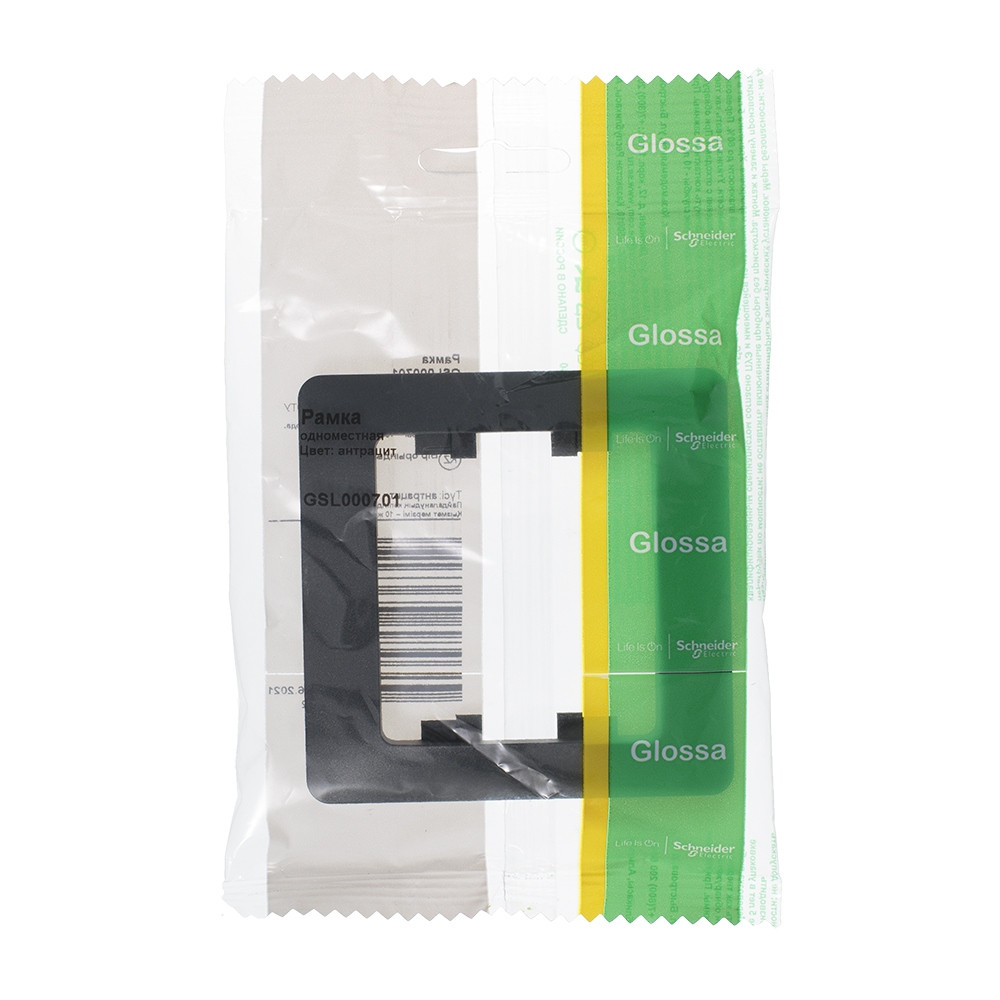 Рамка Systeme Electric (ранее Schneider Electric) серии Glossa (цвет антрацит) одинарная. Выполнена из материала PС+ASA, стойкого к УФ-излучению и появлению царапин. Позволяет гармонично вписать электроустановочное изделие в интерьер помещения.