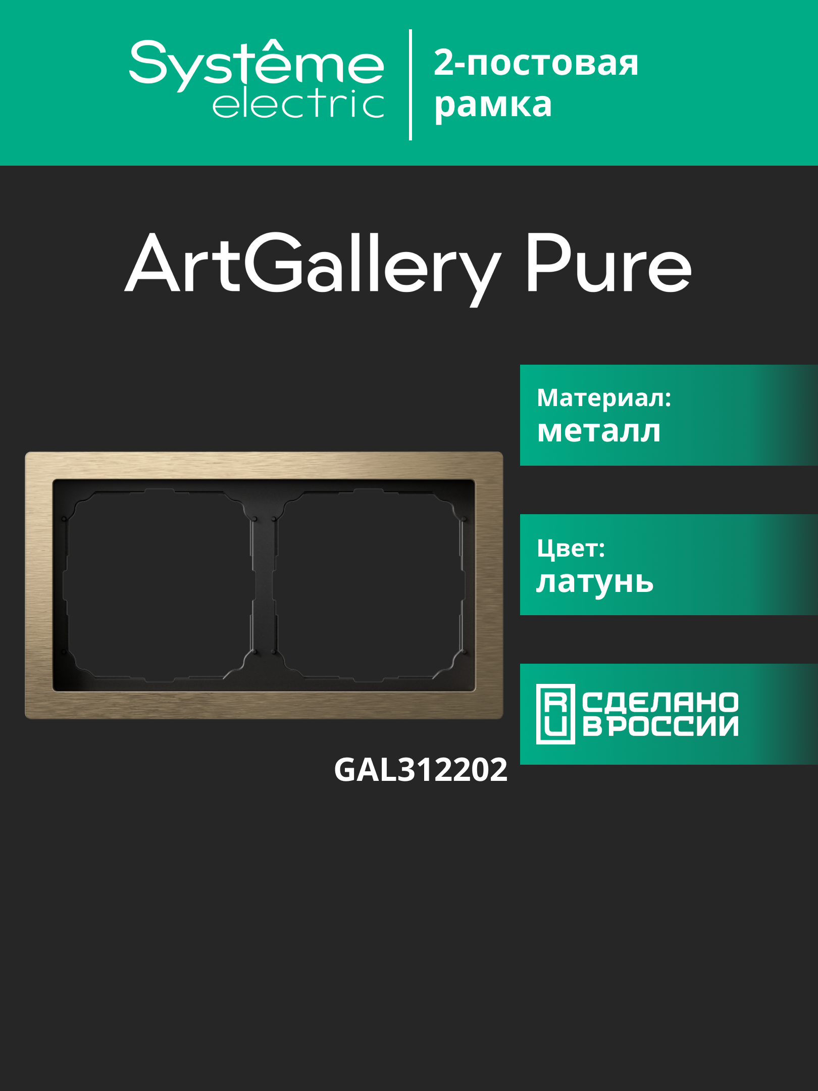 Рамка Systeme Electric серии ArtGallery Pure из металла в цвете латунь, в 2-х постовом исполнении. Металл латунь - насыщенный желто-коричневый тон с винтажным шармом, создаст уютную атмосферу. Установка возможна в вертикальном и горизонтальном положениях.