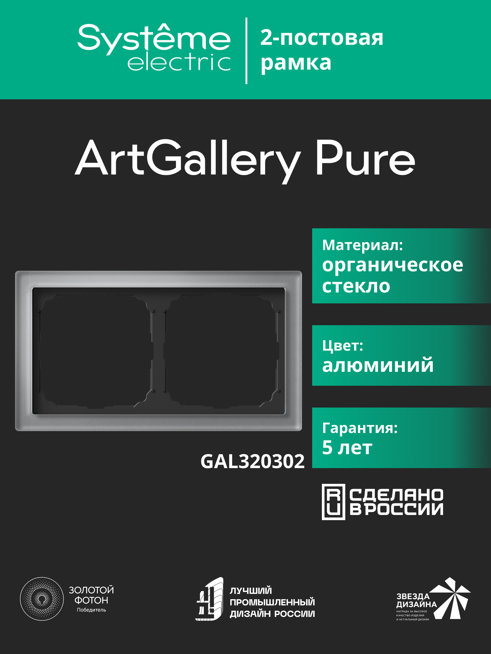 Рамка Systeme Electric серии ArtGallery Pure из органического стекла в цвете алюминий, в 2-х постовом исполнении. Органическое стекло алюминий - нейтральный серо-металлик, идеален для хай-тека и минимализма. Установка возможна в вертикальном и горизонтальном положениях.