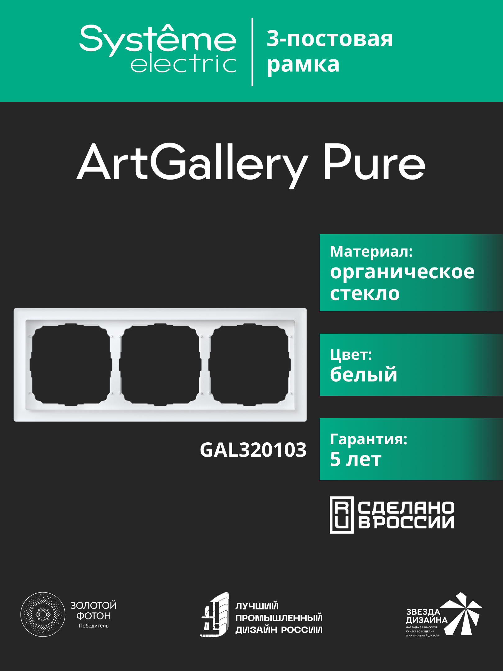 Рамка Systeme Electric серии ArtGallery Pure из органического стекла в цвете белый, в 3-х постовом исполнении. Органическое стекло белый - чистый, яркий, универсальный, подходит для любых светлых поверхностей. Установка возможна в вертикальном и горизонтальном положениях.