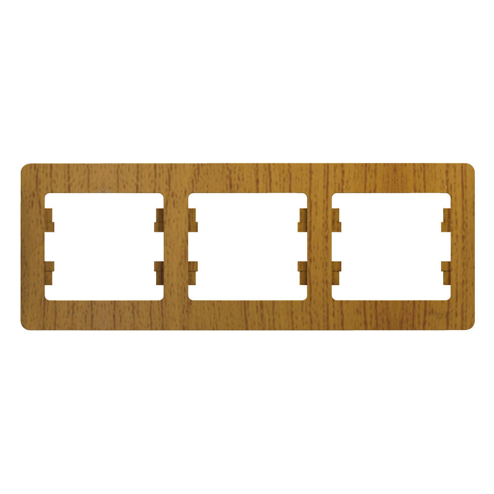 Рамка Systeme Electric (ранее Schneider Electric) серии Glossa (цвет дерево дуб) трёхместная. Устанавливается в горизонтальном положении. Выполнена из материала PС+ASA, стойкого к УФ-излучению и появлению царапин. Позволяет гармонично вписать электроустановочное изделие в интерьер помещения.