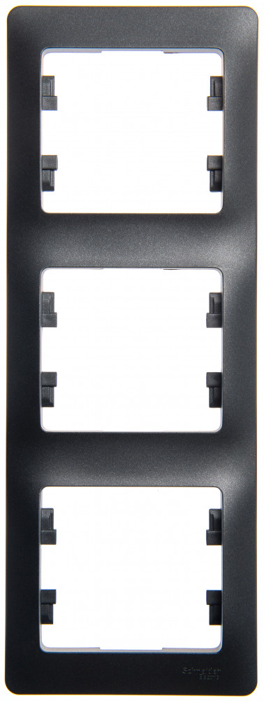 Рамка Systeme Electric (ранее Schneider Electric) серии Glossa (цвет антрацит) трёхместная. Устанавливается в вертикальном положении. Выполнена из материала PС+ASA, стойкого к УФ-излучению и появлению царапин. Позволяет гармонично вписать электроустановочное изделие в интерьер помещения.