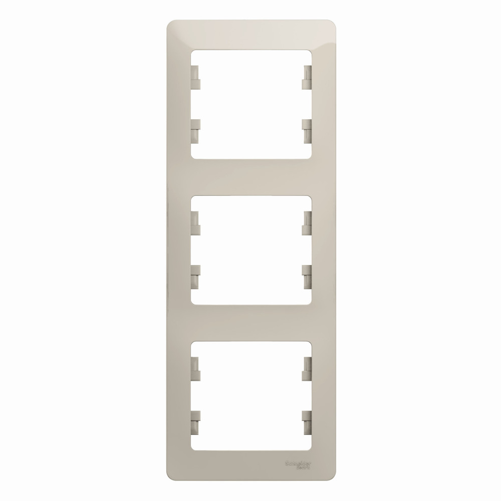 Рамка Systeme Electric (ранее Schneider Electric) серии Glossa (цвет молочный) трёхместная. Устанавливается в вертикальном положении. Выполнена из материала PС+ASA, стойкого к УФ-излучению и появлению царапин. Позволяет гармонично вписать электроустановочное изделие в интерьер помещения.