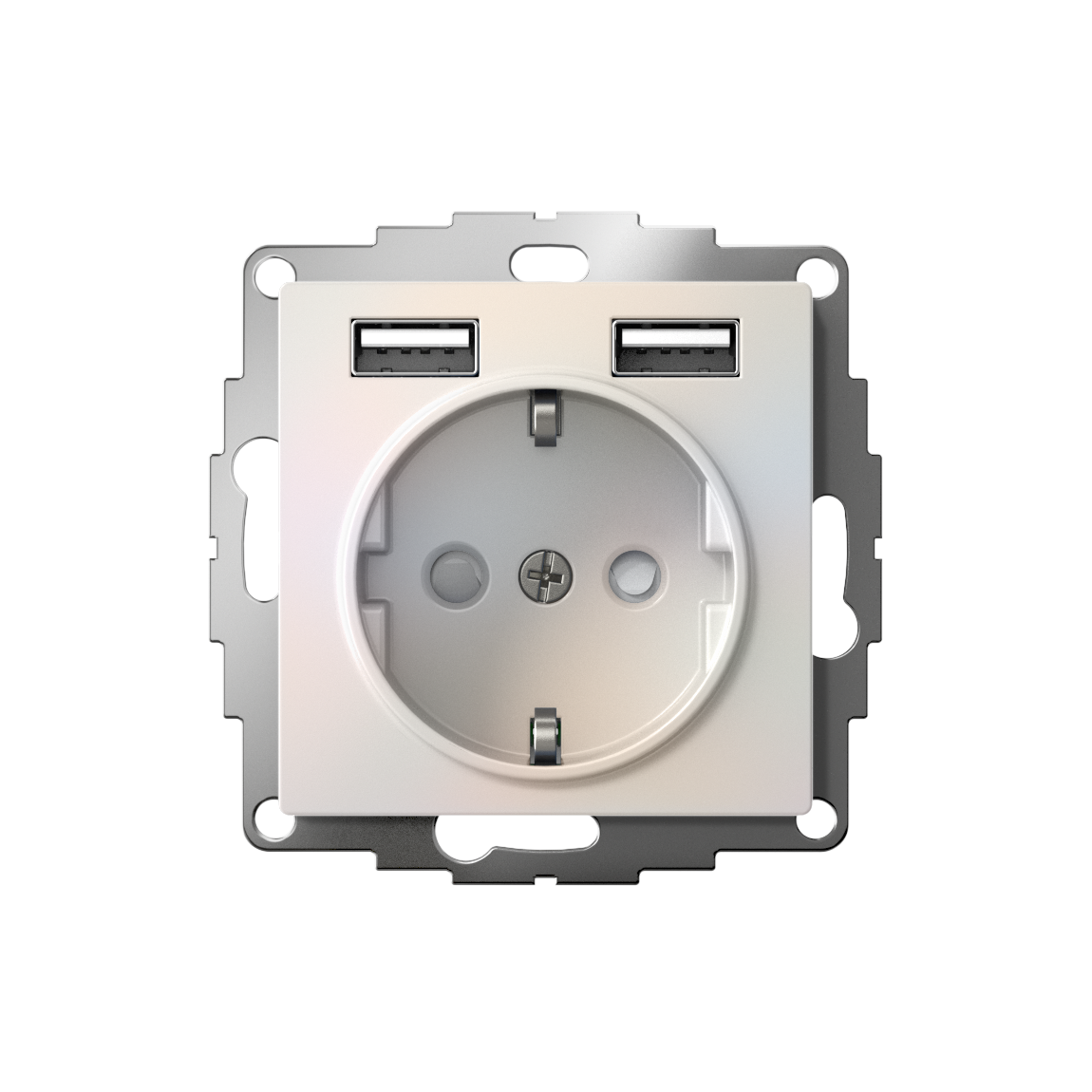 Розетка силовая Systeme Electric (ранее Schneider Electric) серии AtlasDesign 16А в цвете жемчуг с заземлением и шторками с розеткой USB, с двумя разъемами типа А. Заземляющий контакт обеспечивает дополнительную защиту от удара электрическим током. Шторки обеспечивают дополнительную безопасность в доме, где находятся дети. Одно устройство позволяет как подключить бытовые приборы, так и зарядить мобильные устройства.